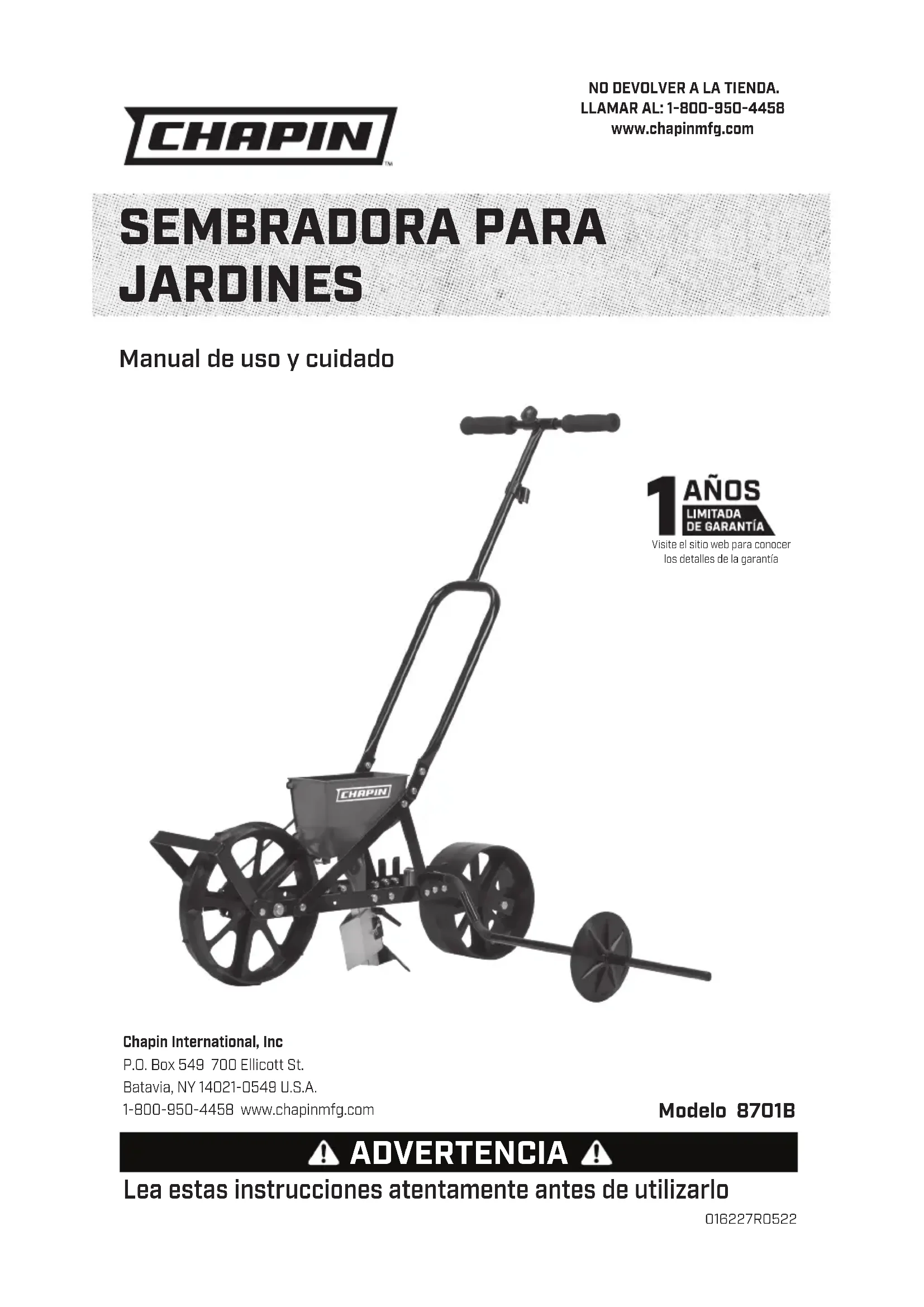 Garden Seeder W 6 Seed Plates 8701B - Jardinería Chapin - Manual de uso y guía de instrucciones gratis