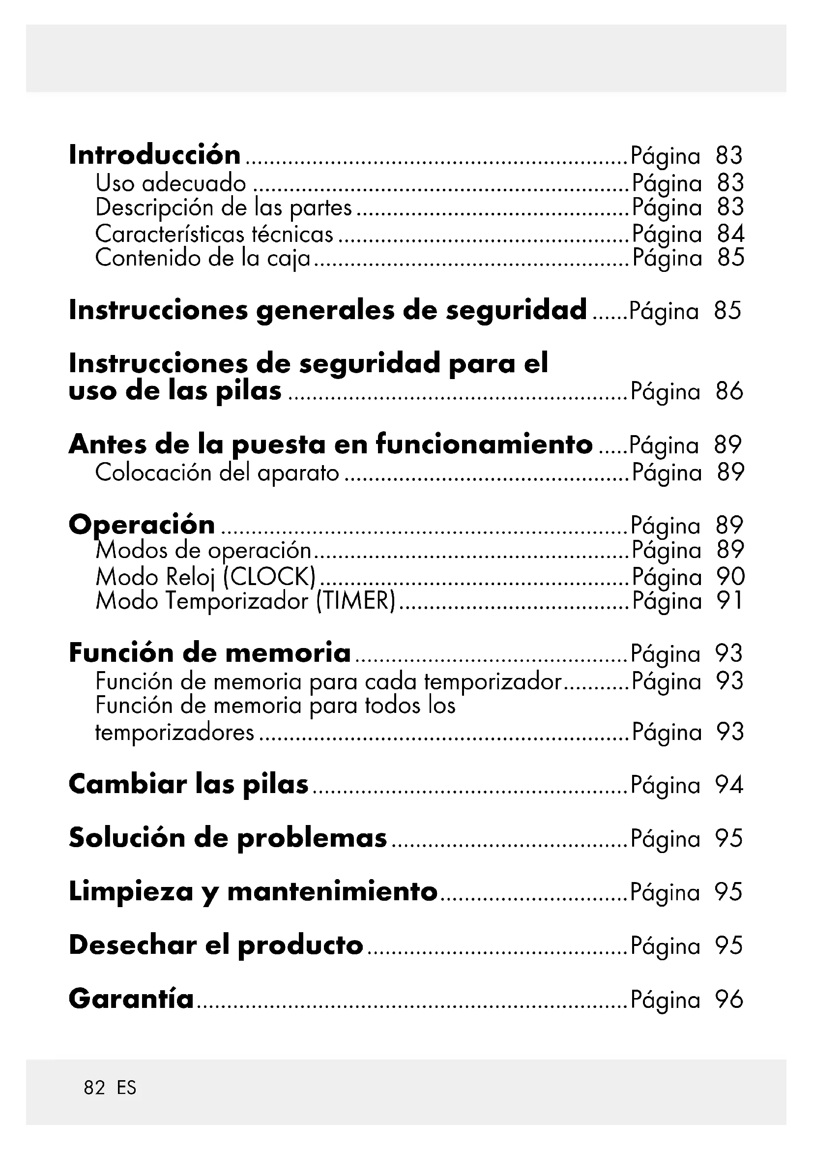 ES Instrucciones de utilización y de seguridad Página 82