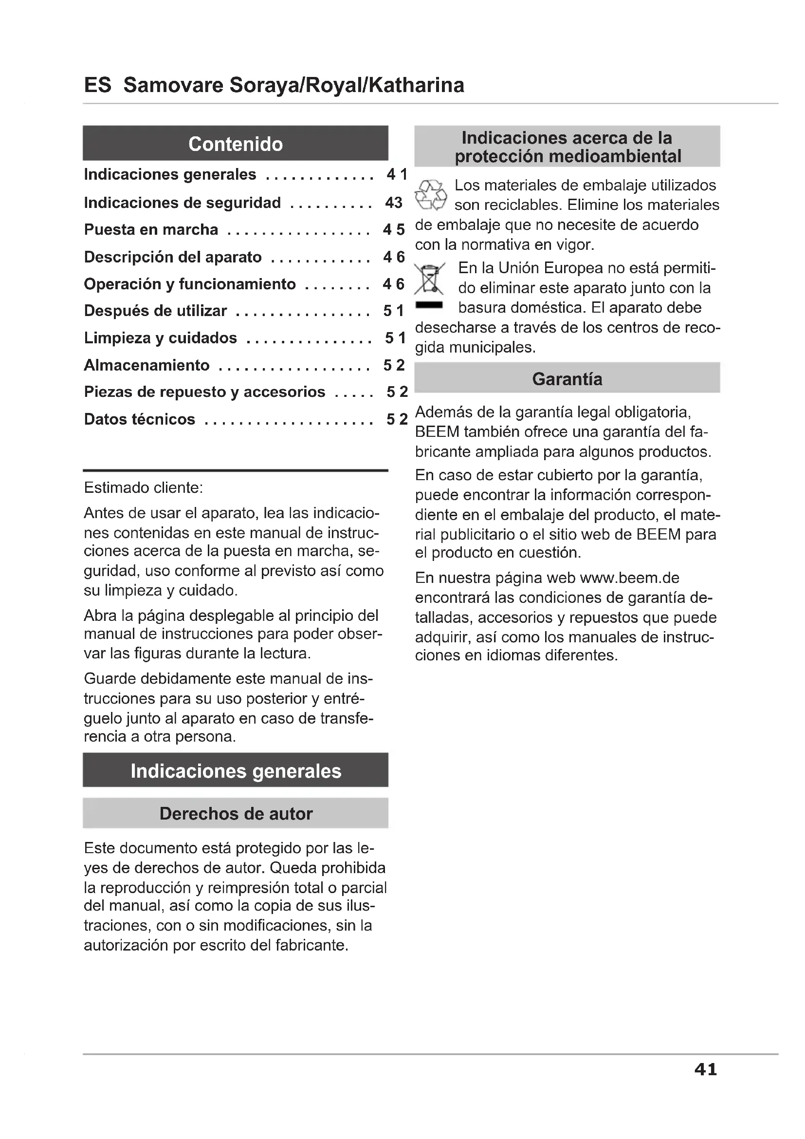 Indicaciones generales 41