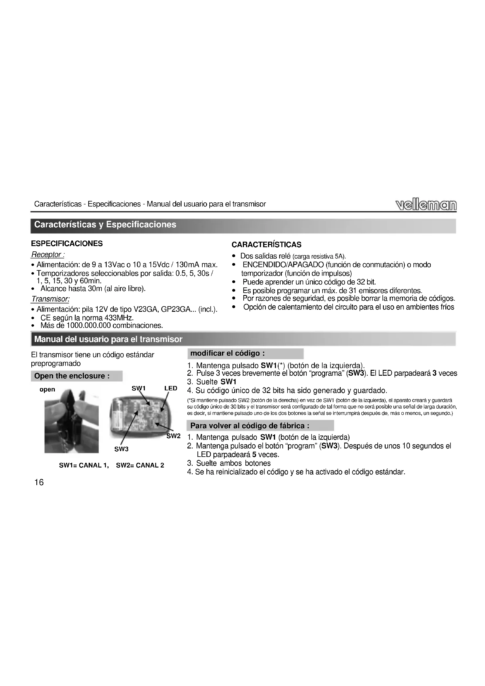 VM130 - Remoto VELLEMAN - Manual de uso y guía de instrucciones gratis