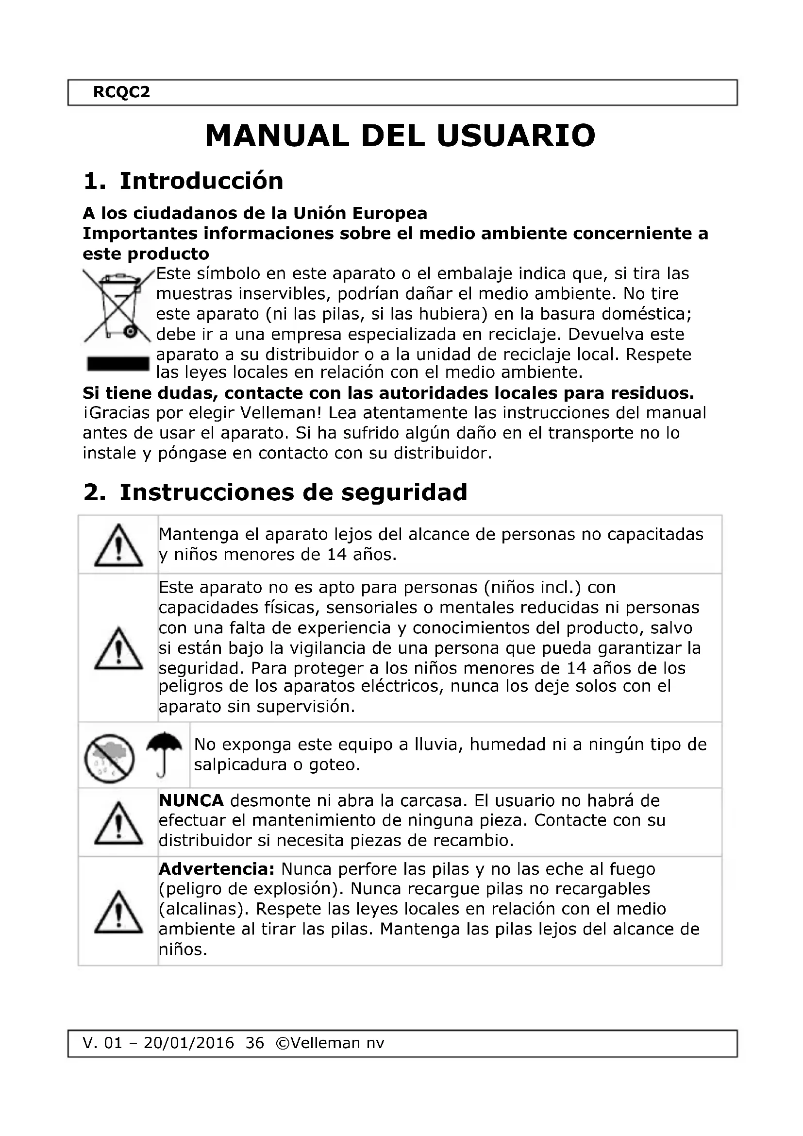 MANUAL DE USUARIO RCQC2 VELLEMAN