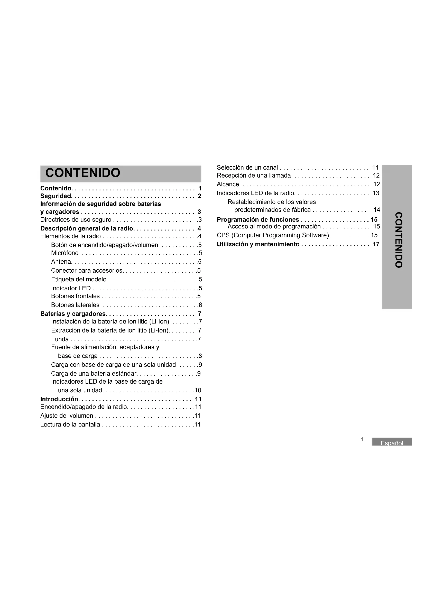 - Descripción general de la radio p. 4