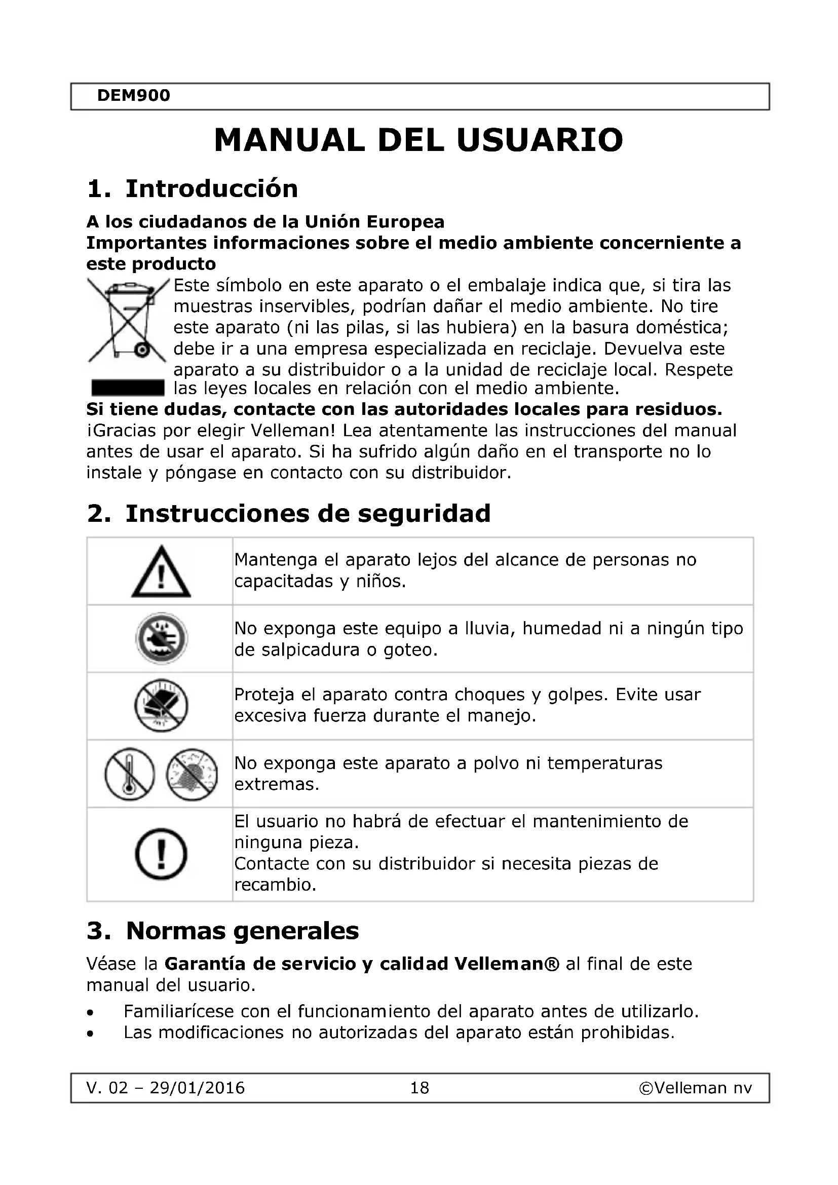 MANUAL DE USUARIO DEM900 VELLEMAN