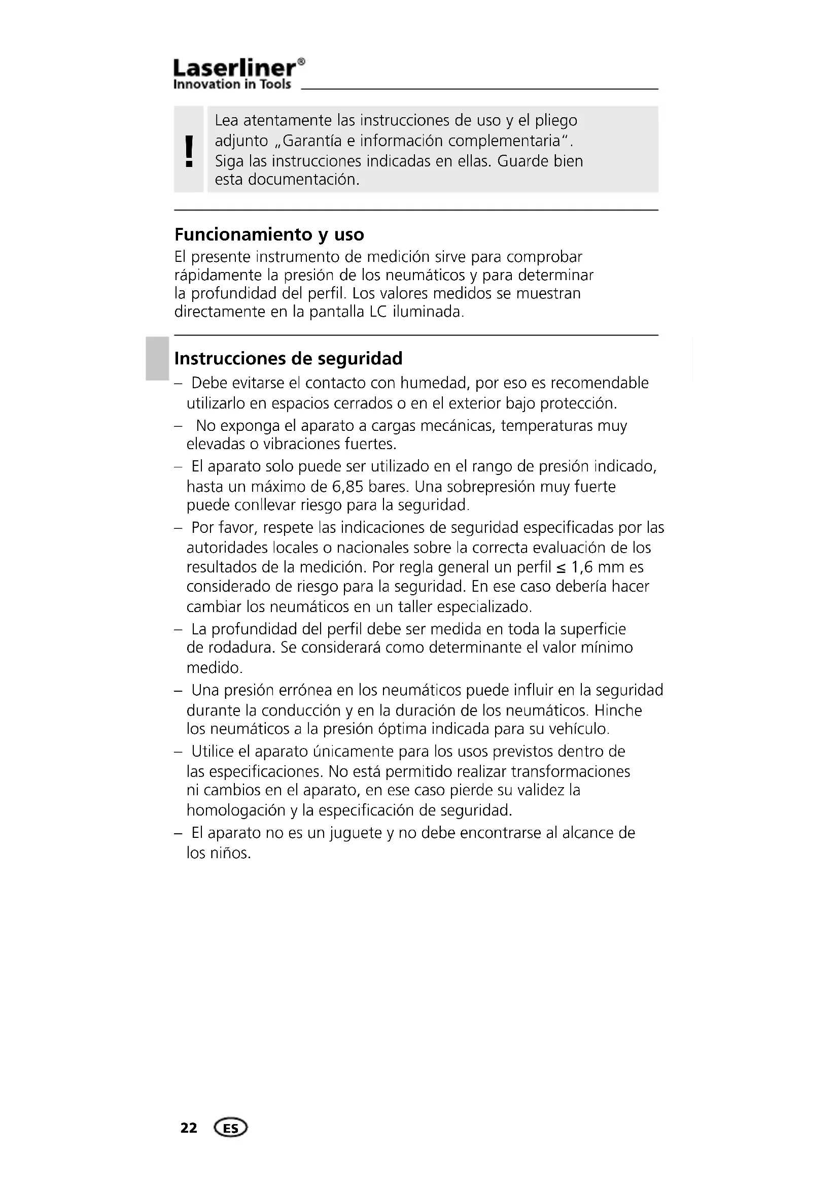 MANUAL DE USUARIO TireCheck Laserliner