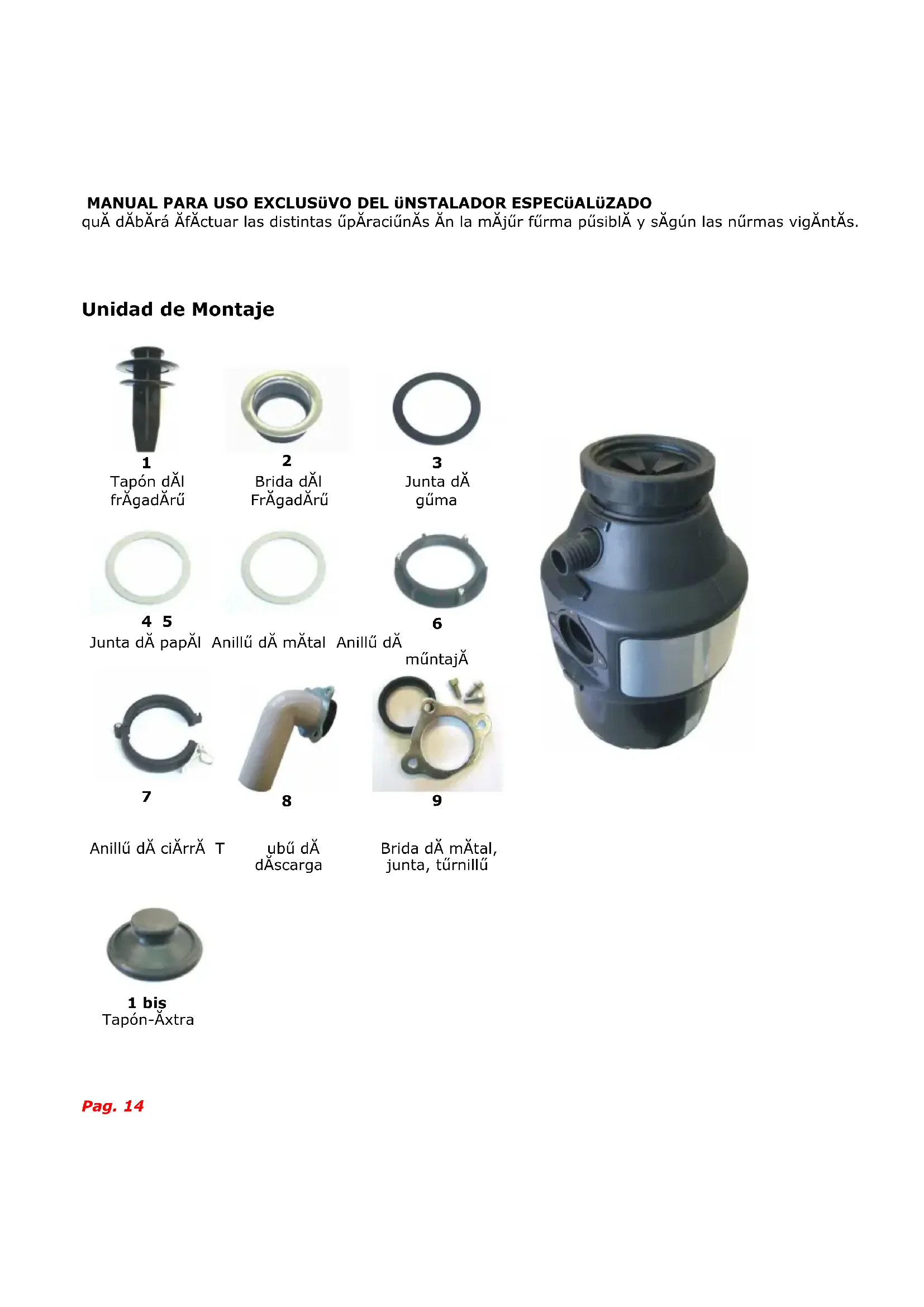 Es impúrtantà NO insÃrir lús alimÃntús Ăn la cámara antÃs dà abrir Ăl grifú y ĀncÃndÃr Ăl trituradûr, dà lú cúntrariú ú usandú púça agua durantà la trituración, sà crÃaría un Âmpastú difícil dà Aliminar ú quà púdría úbturar Ăl dÃsagüÃ. Para Ăl trituradûr Ăl agua As Ăl vÂhículú dà lús dÃsÃchús ; a mayûr cantidad dà agua utilizada mÃjûrÃs sún lús rÃsultadús.