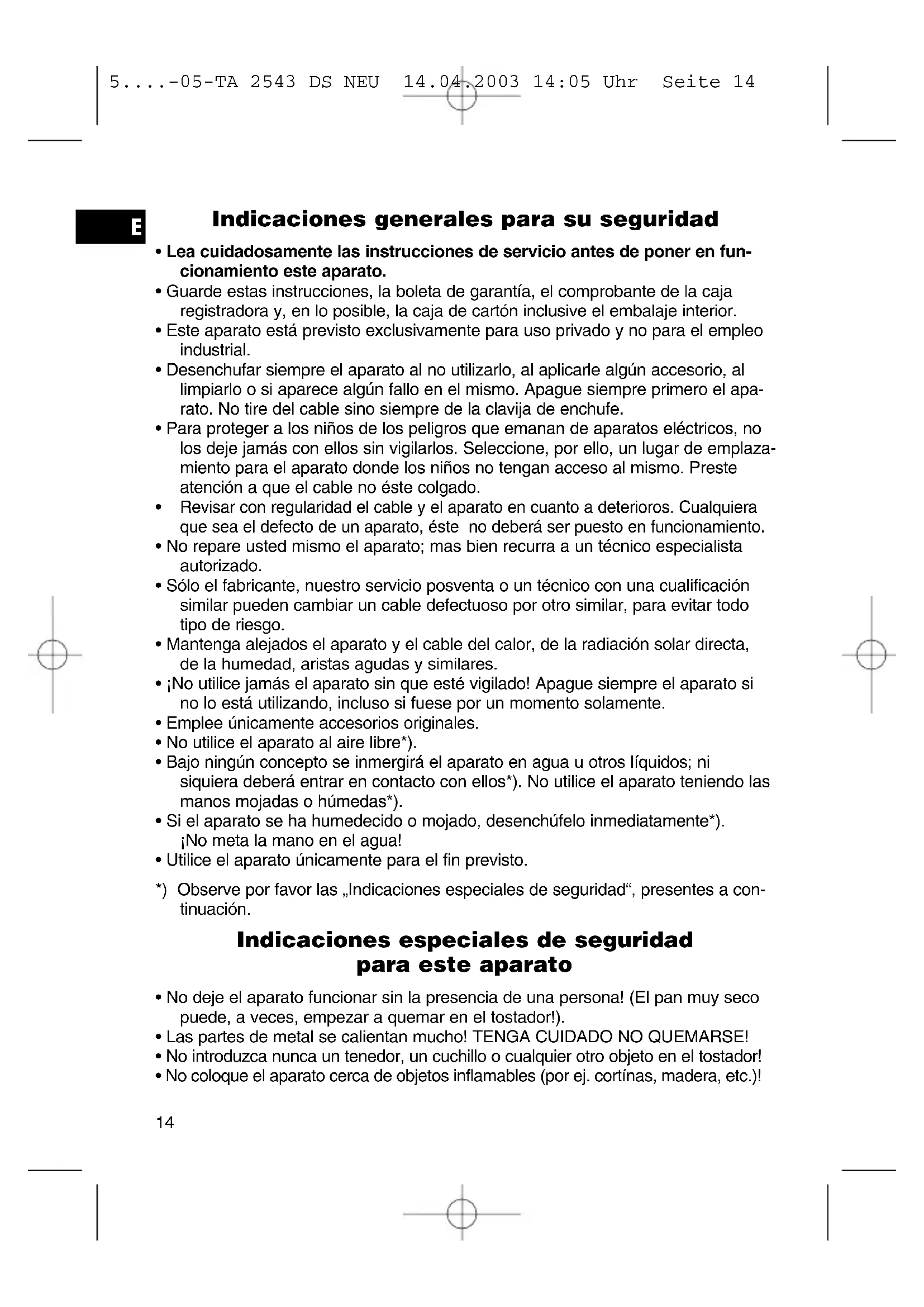 5....-05-TA 2543 DS NEU 14.04.2003 14:05 Uhr Seite 13Indicaciones generales para su seguridad