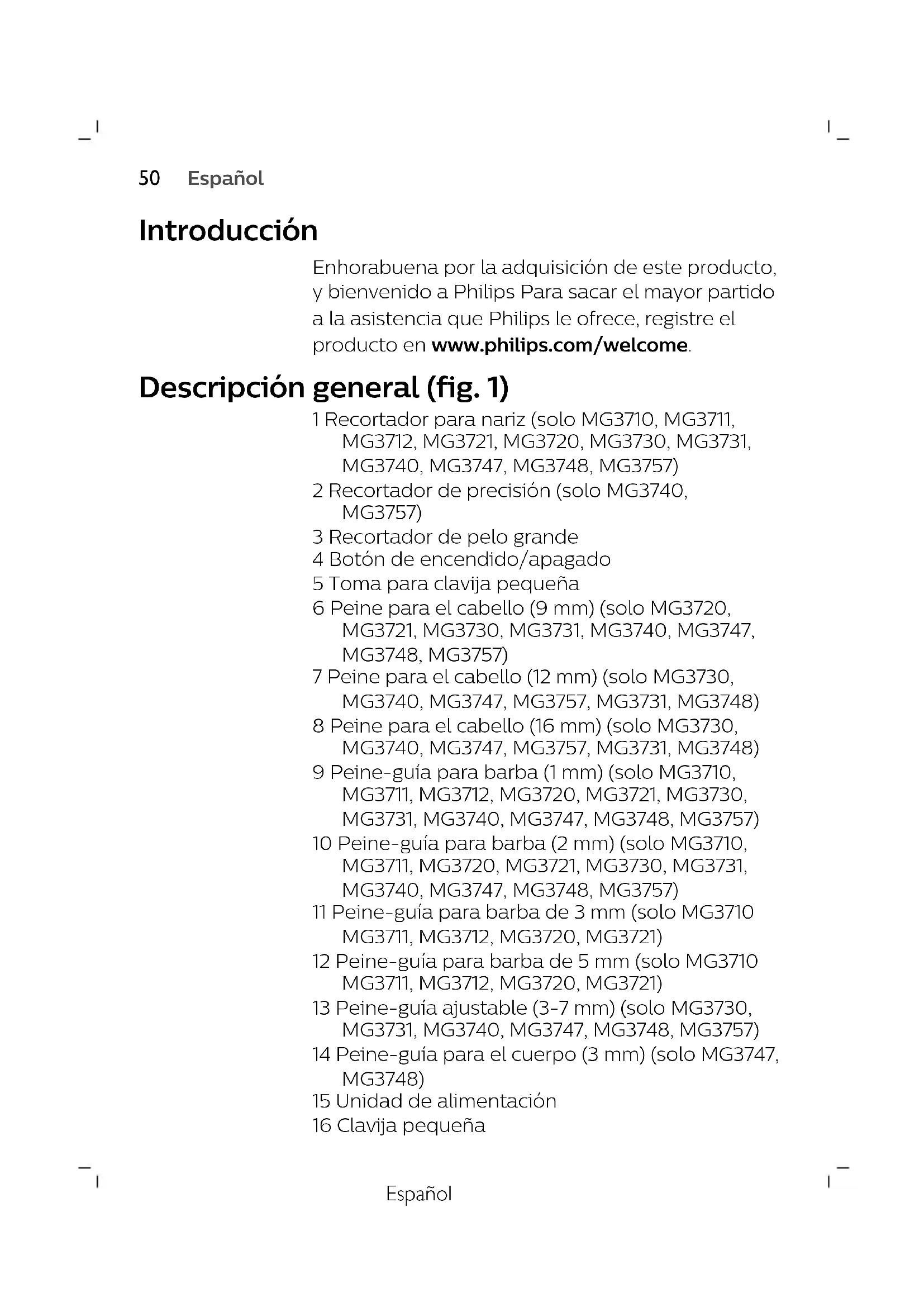 Series 3000 MG3711 - Recortador de barba PHILIPS - Manual de uso y guía de instrucciones gratis