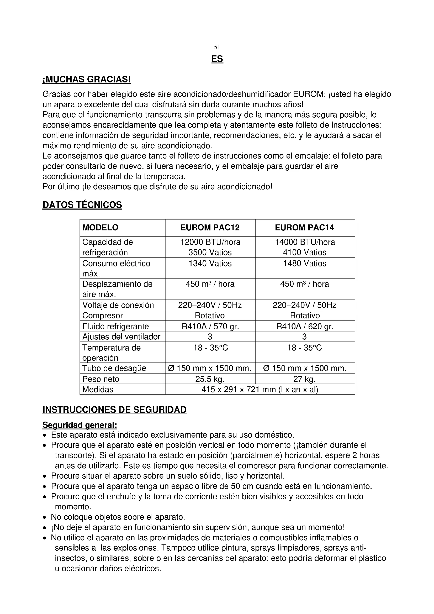 | MODELO | EUROM PAC12 | EUROM PAC14 |