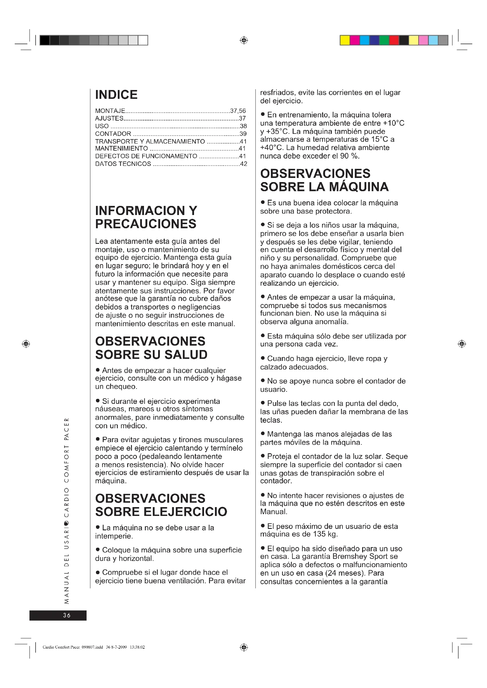 MANUAL DE USUARIO Cardio Comfort Pacer Bremshey