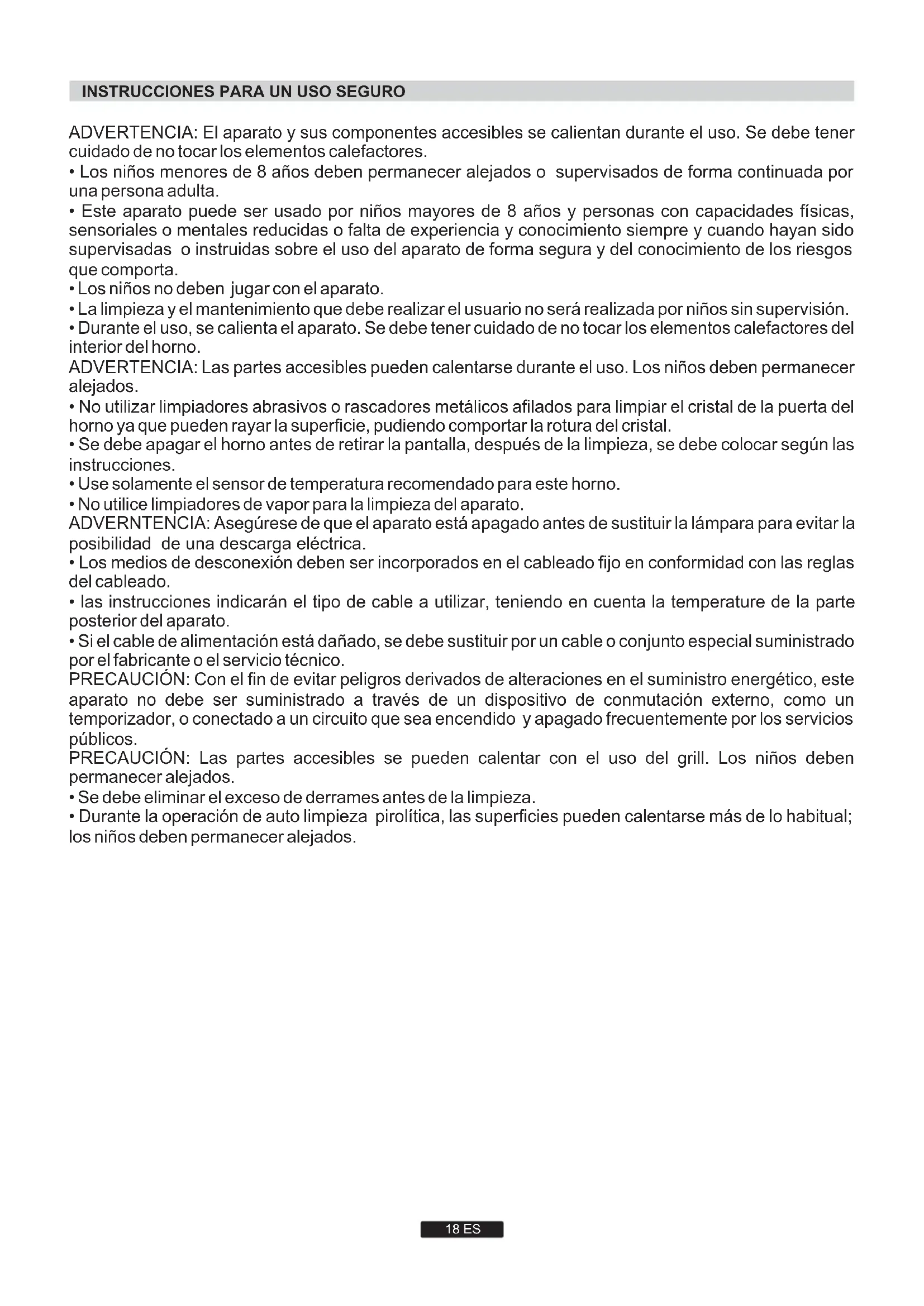 *18 ES ADVERTENCIA: El aparato y sus componentes accesibles se calientan durante el uso. Se debe tener cuidado de no tocar los elementos calefactores.