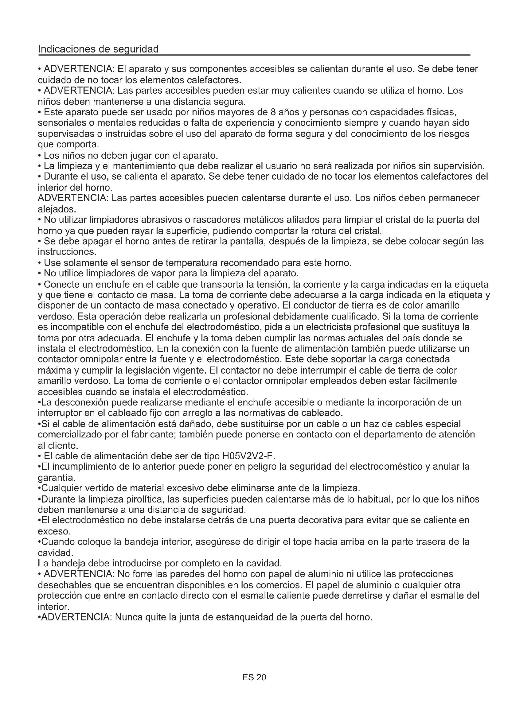 - ADVERTENCIA: Nunca quite la junta de estanqueidad de la puerta del horno. Indicaciones de seguridad ES 20Advertencias generales