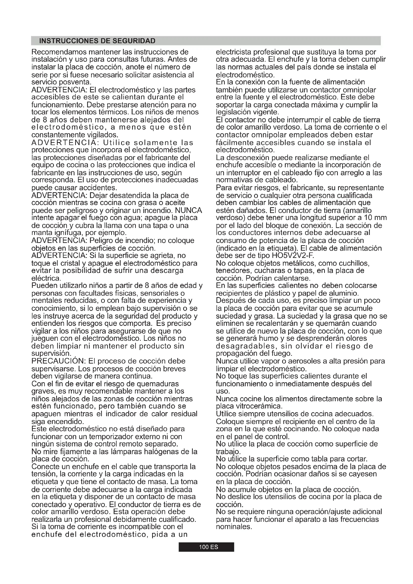 INSTRUCCIONES DE SEGURIDAD. 100