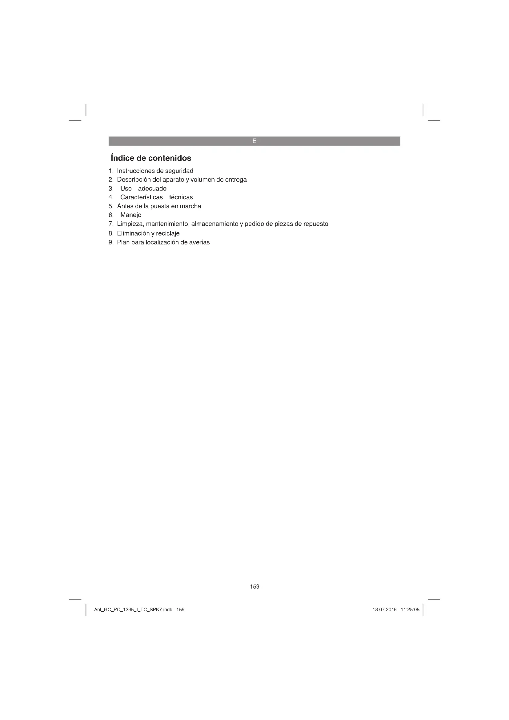 El aparato está protegido por un embalaje para evitar daños producidos por el transporte. Este embalaje es materia prima y, por eso, se puede volver a utilizar o llevar a un punto de reciclaje. El aparato y sus accesorios están compuestos de diversos materiales, como, p. ej., metal y plástico. Los aparatos defectuosos no deben tirarse a la basura doméstica. Para su eliminación adecu- ada, el aparato debe entregarse a una entidad recolectora prevista para ello. En caso de no conocer ninguna, será preciso informarse en el organismo responsable del municipio. Anl_GC_PC_1335_I_TC_SPK7.indb 170Anl_GC_PC_1335_I_TC_SPK7.indb 170 18.07.2016 11:25:0618.07.2016 11:25:06E