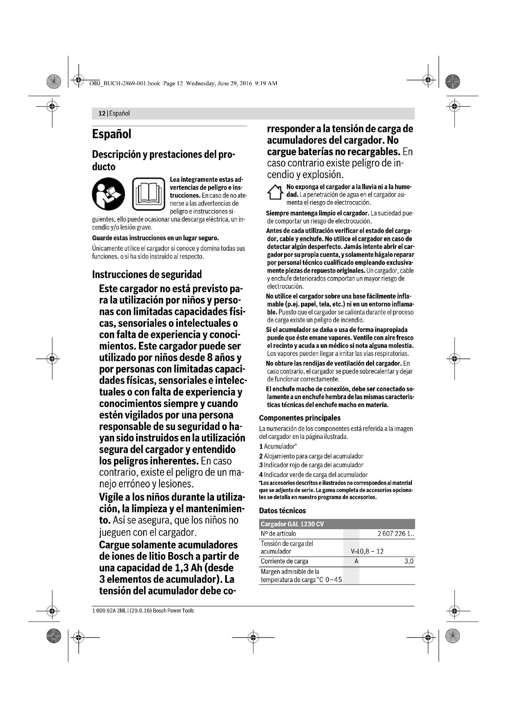 GAL 1230 CV - Cargador de batería BOSCH - Manual de uso y guía de instrucciones gratis