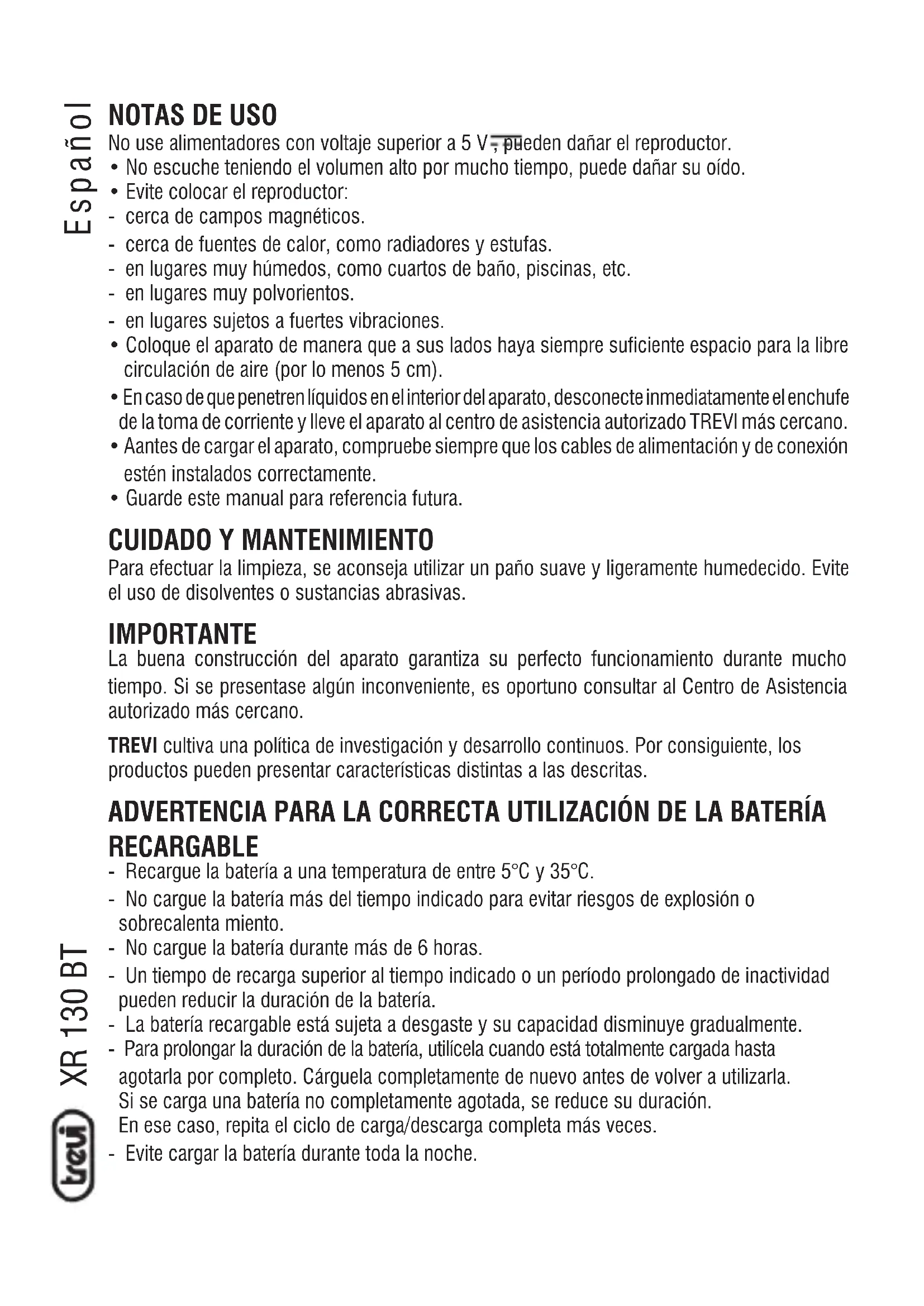 Encuentra gratis el manual del aparato XR 180 BT Trevi en formato PDF.