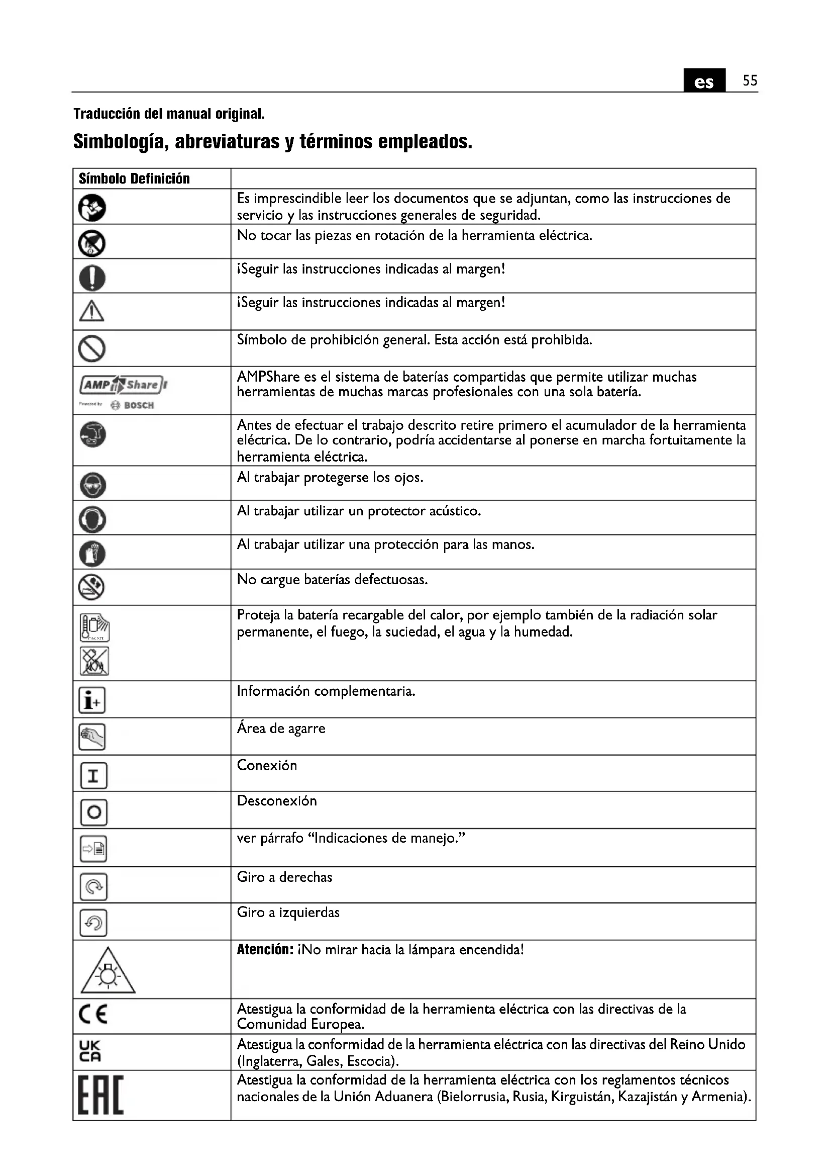 las "Instrucciones generales de seguridad" (n° de documento 3 41 30 465 06 0) adjuntas. Guarde la documento citada para posteriores consultas y entrégueselas al usuario en caso de prestar o vendir la herramienta electrica.