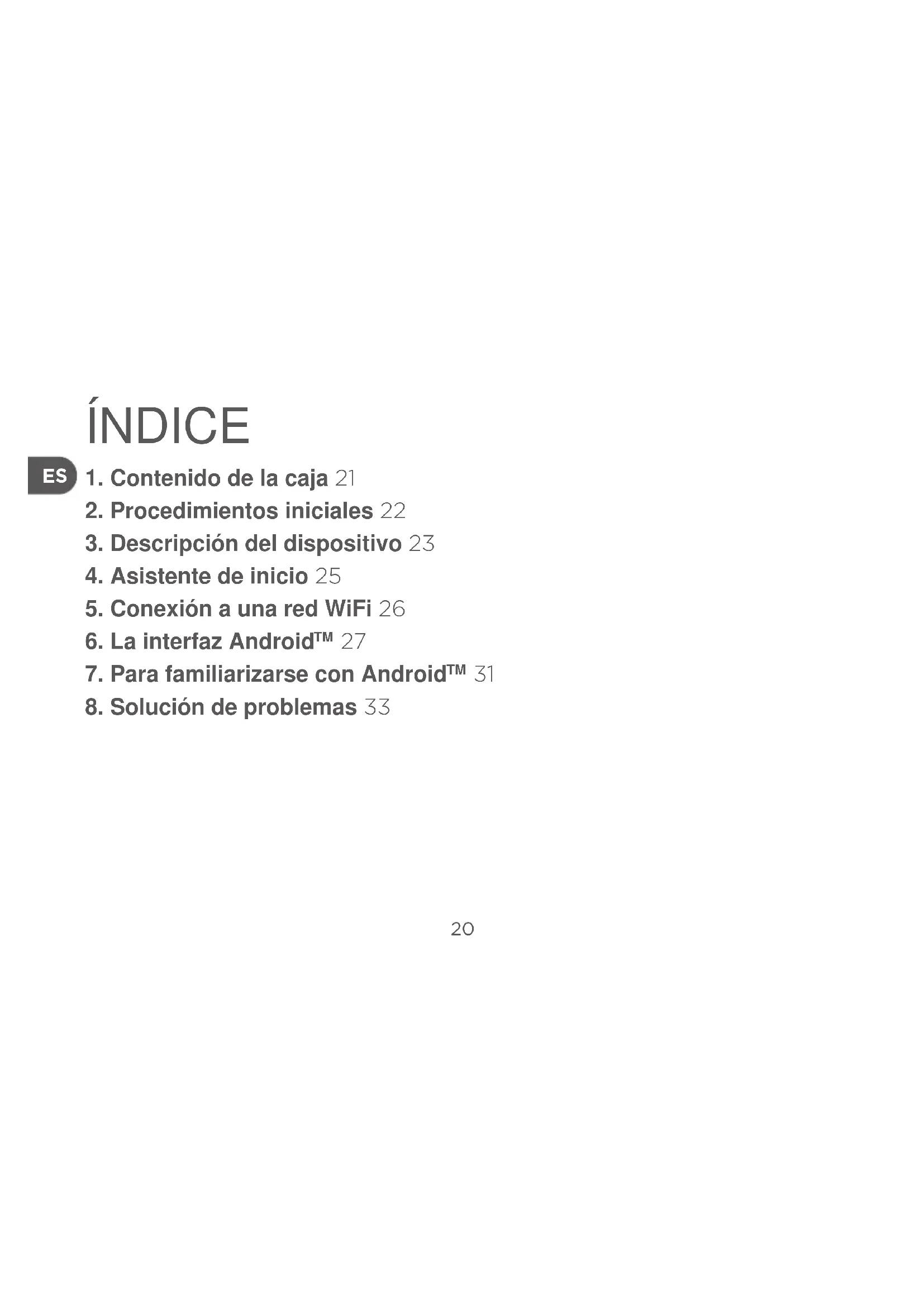 - Pulse el botón ON/OFF durante 10 segundos o utilice la restauración de hardware. Pulse cuidadosamente el botón Reset utilizando un objeto puntiagudo, como un clip. Si desea aumentar la duración de la batería: Disminuya el brillo de la pantalla y desactive las conexiones inalámbricas si no las utiliza. Si el dispositivo funciona con demasiada lentitud: Cierre todas las aplicaciones que no esté utilizando. Si la recepción WiFi es demasiado baja: Asegúrese de que no se encuentra lejos de la zona activa WiFi. Actualizar el rmware del dispositivo. Restablecer la conguración de su conexión. Póngase en contacto con el proveedor de la conexión WiFi.34