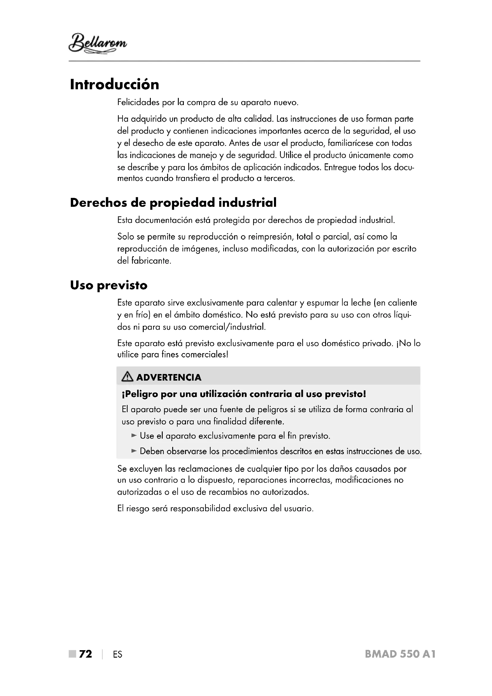 MANUAL DE USUARIO BMAD 550 A1 Bellarom