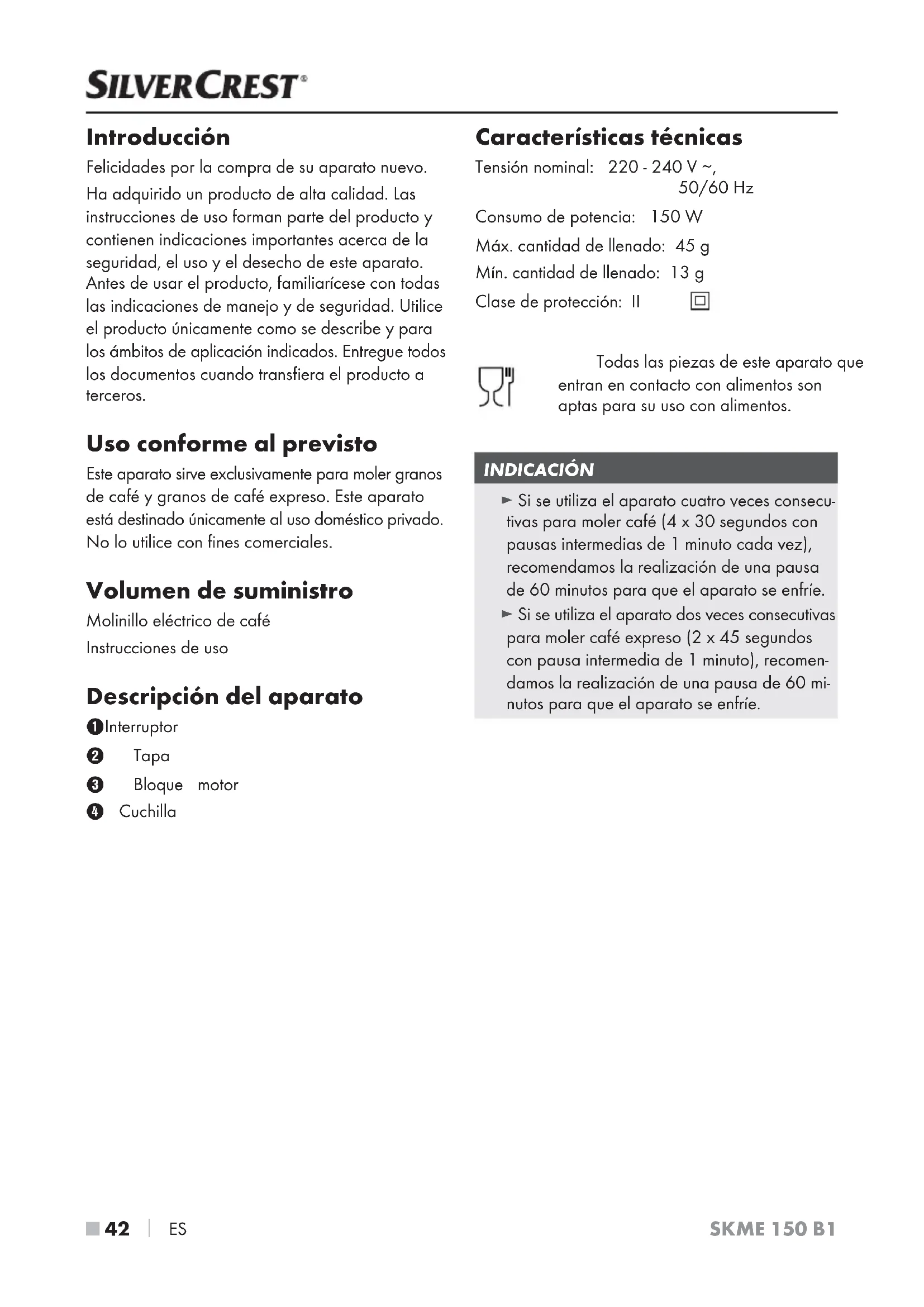 SKME 150 B1 - Molinillo de cafe SILVERCREST - Manual de uso y guía de instrucciones gratis