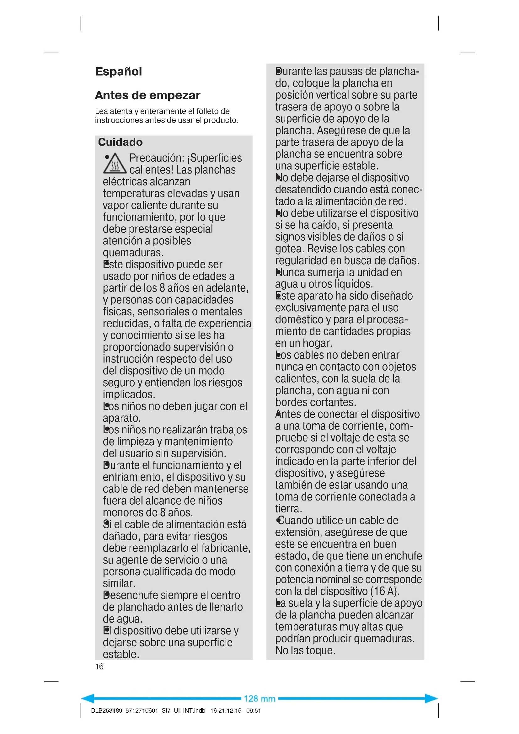 DLB253489_5712710601_SI7_UI_INT.indb 15 21.12.16 09:51Español Antes de empezar Lea atenta y enteramente el folleto de instrucciones antes de usar el producto. Cuidado