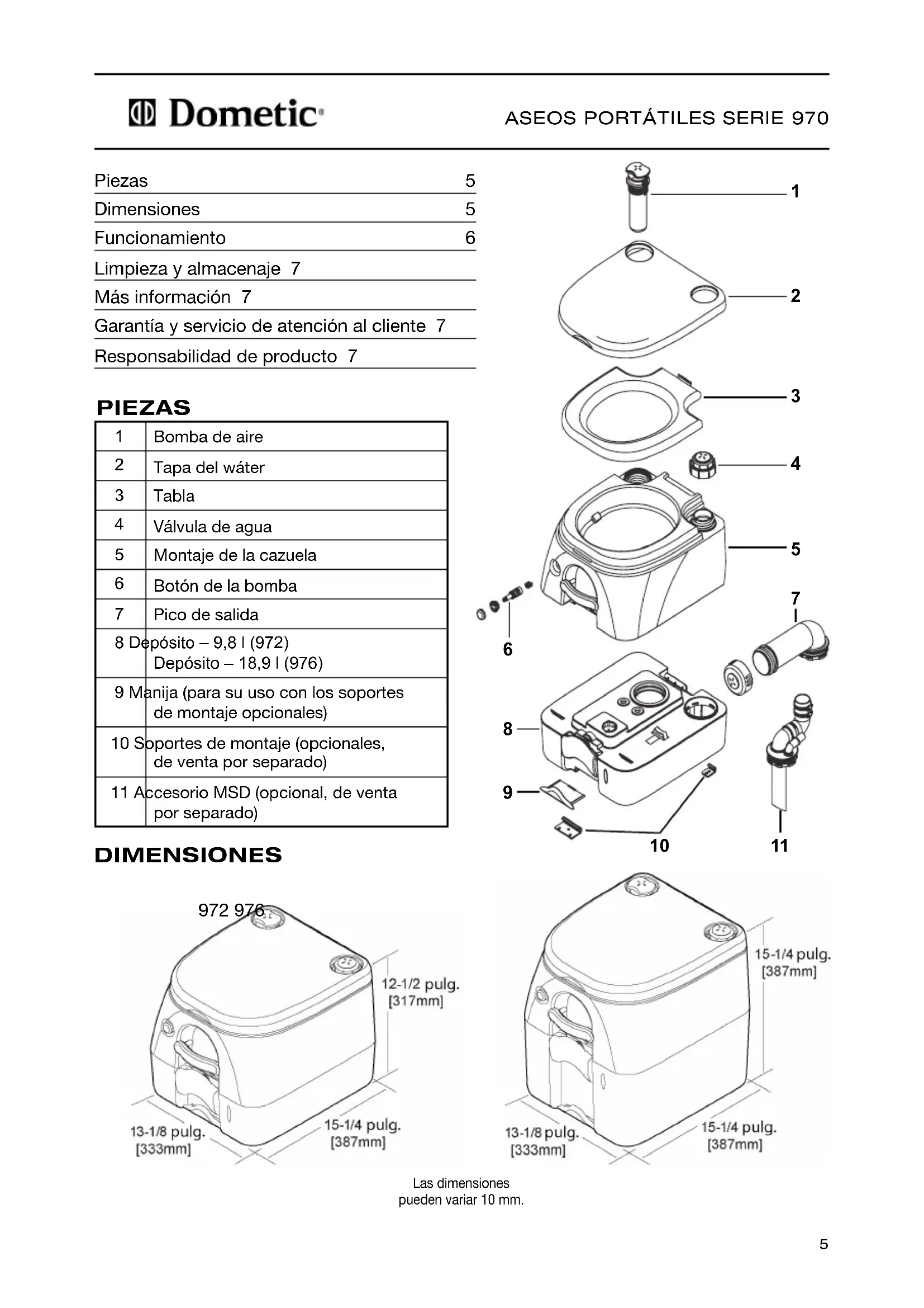 970 - Baño portátil DOMETIC - Manual de uso y guía de instrucciones gratis