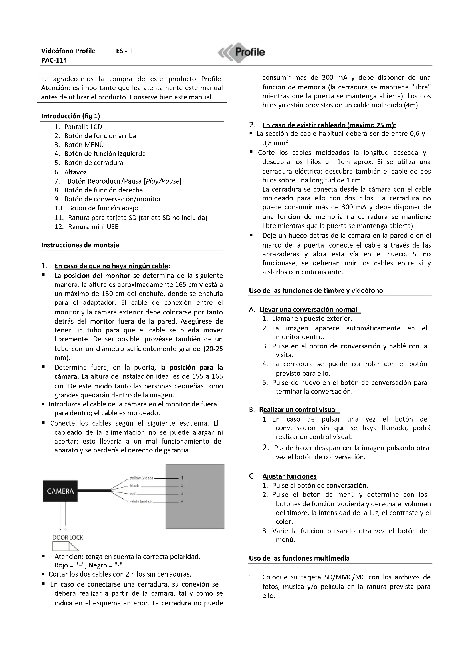 Descarga las instrucciones para tu Cámara de vigilancia en formato PDF gratis! Encuentra tus instrucciones PAC114 Design - Profile y toma tu dispositivo electrónico nuevamente en la mano. En esta página están publicados todos los documentos necesarios para el uso de su dispositivo. PAC114 Design de la marca Profile.