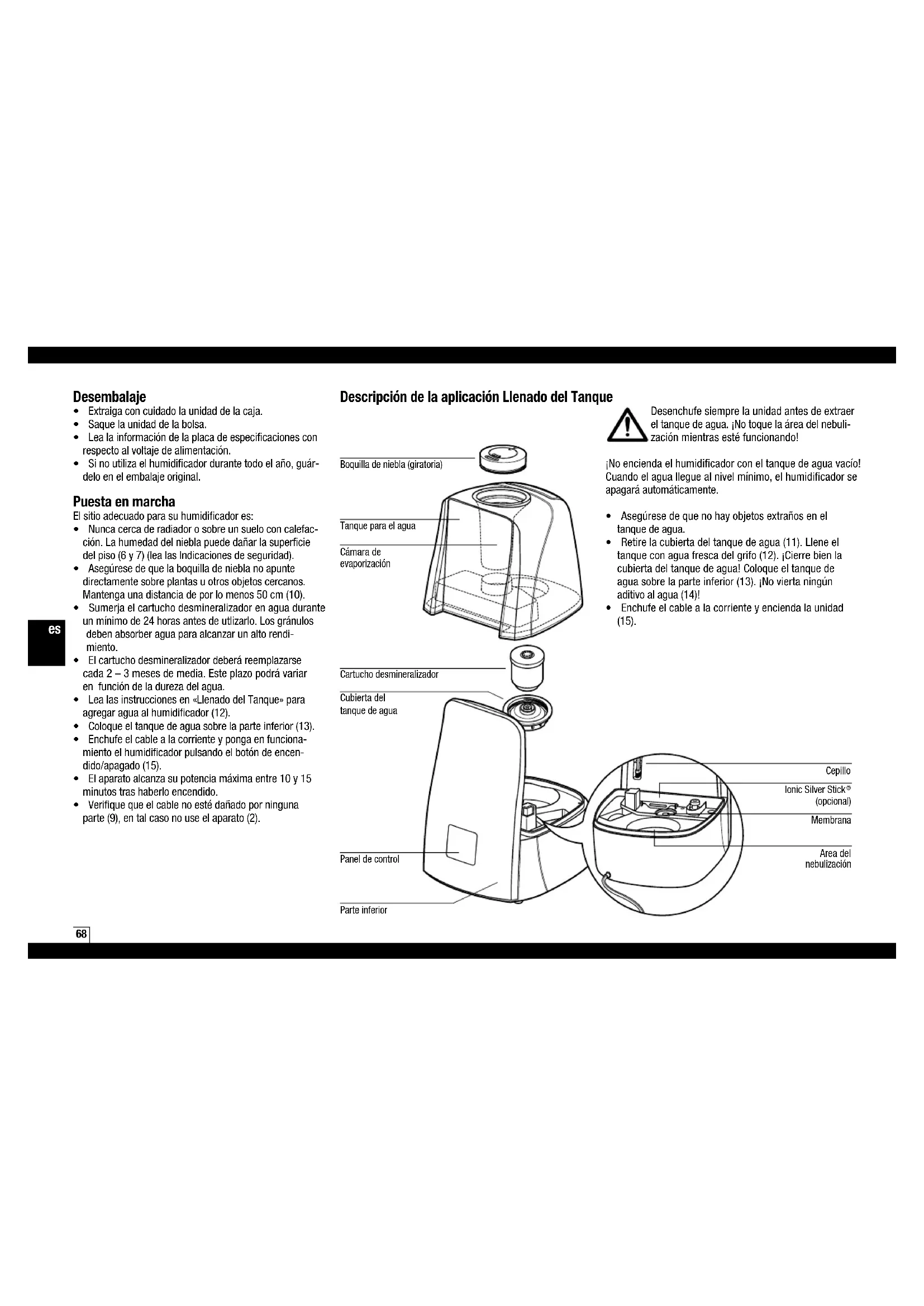 - Elhumidificadordebeserutilizadoexclusivamente parainterioressegúnlasespecificacionestécnicas. Unautilizaciónoaplicacióndistintapuedecausarse- riosperjuiciosparasusaludyparasuentorno.