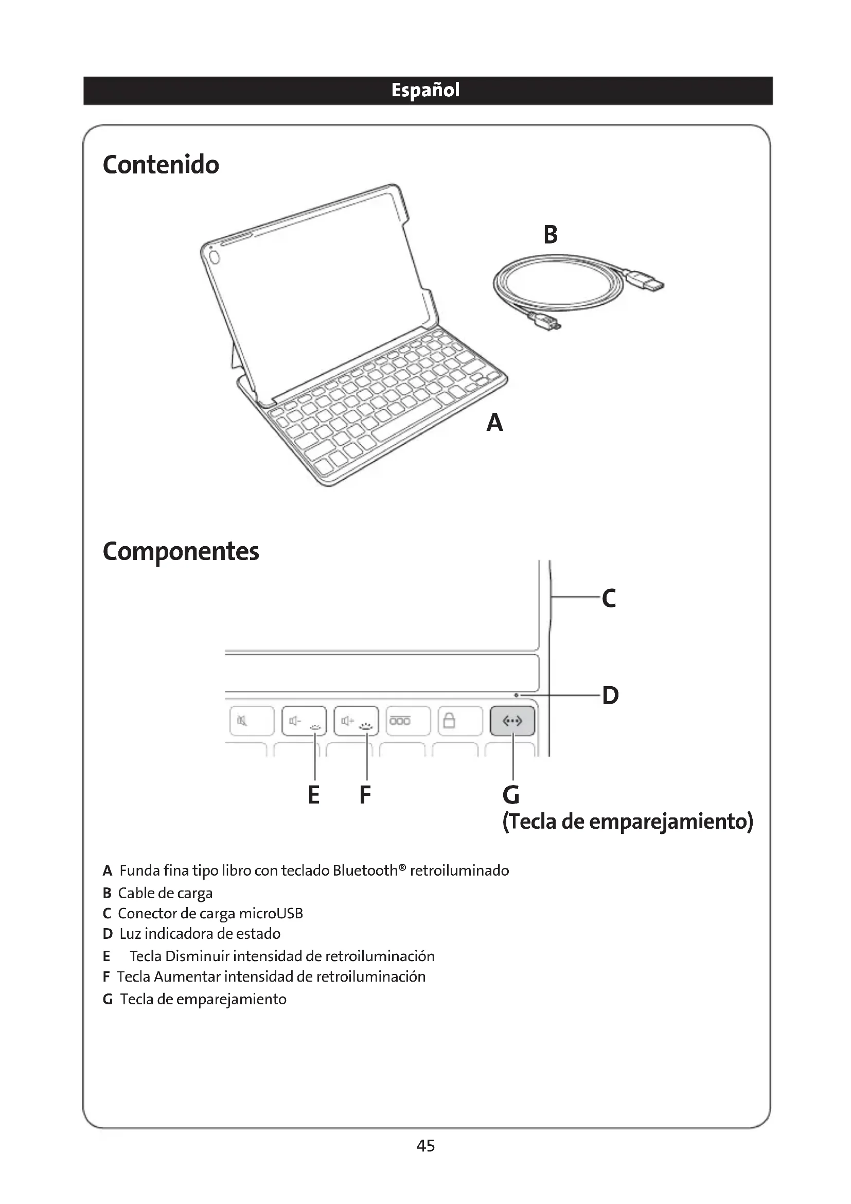 A Funda finalo tipo libro con teclado Bluetooth retroiluminado