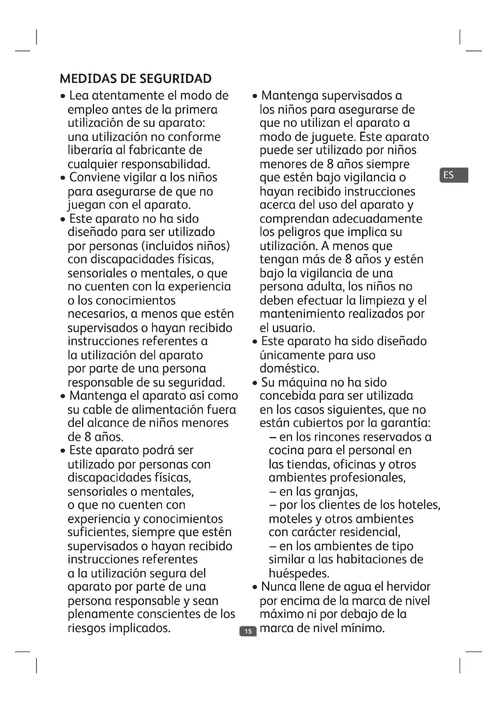 Para evitar cualquier accidente: no lleve en brazos a un niño o un bebé cuando beba o transporte una bebida caliente. ¡¡PARTICIPE EN LA CONSERVACIÓN DEL MEDIO AMBIENTE!! Su electrodoméstico contiene materiales recuperables y/o reciclables. Entréguelo al final de su vida útil, en un Centro de Recogida Específico o en uno de nuestros Servicios Oficiales Post Venta donde será tratado de forma adecuada. ES18