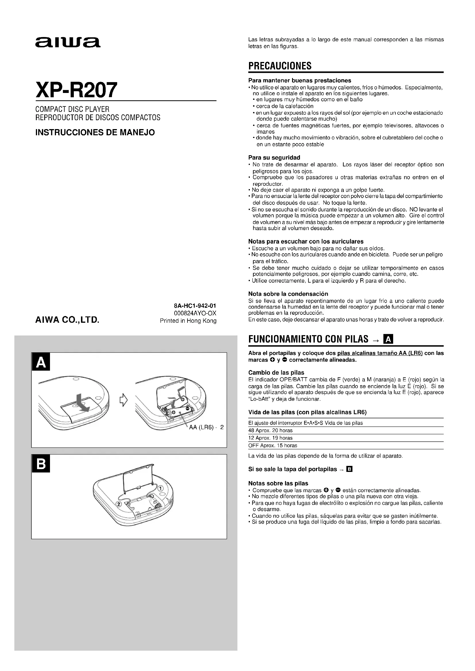 8A-HC1-942-01000824AYO-OXPrinted in Hong KongLa vida de las pilas depende de la forma de utilizar el aparato. Si se sale la tapa del portapilas → B Notas sobre las pilas