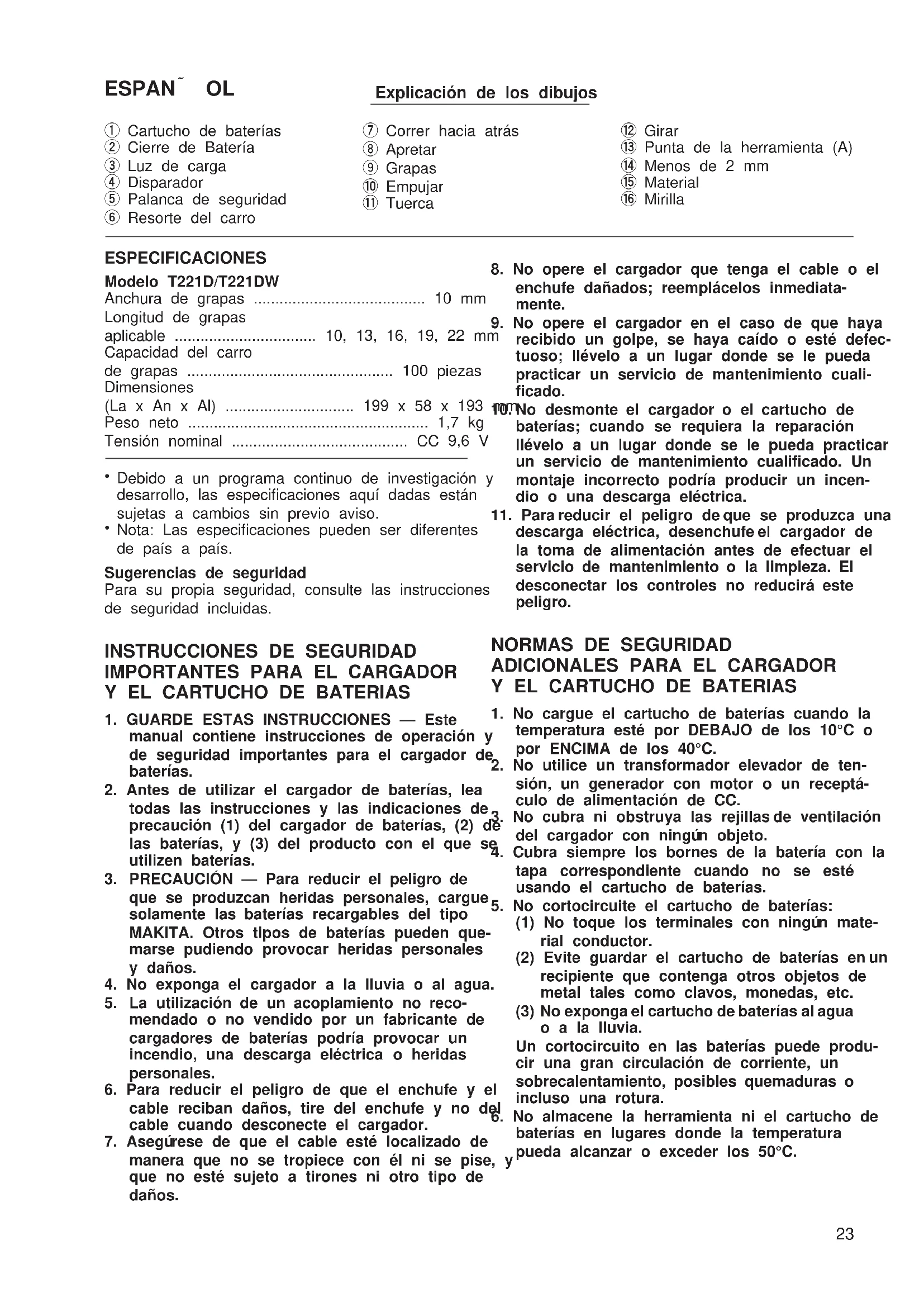 Descarga las instrucciones para tu Grapadora en formato PDF gratis! Encuentra tus instrucciones T221D - MAKITA y toma tu dispositivo electrónico nuevamente en la mano. En esta página están publicados todos los documentos necesarios para el uso de su dispositivo. T221D de la marca MAKITA.