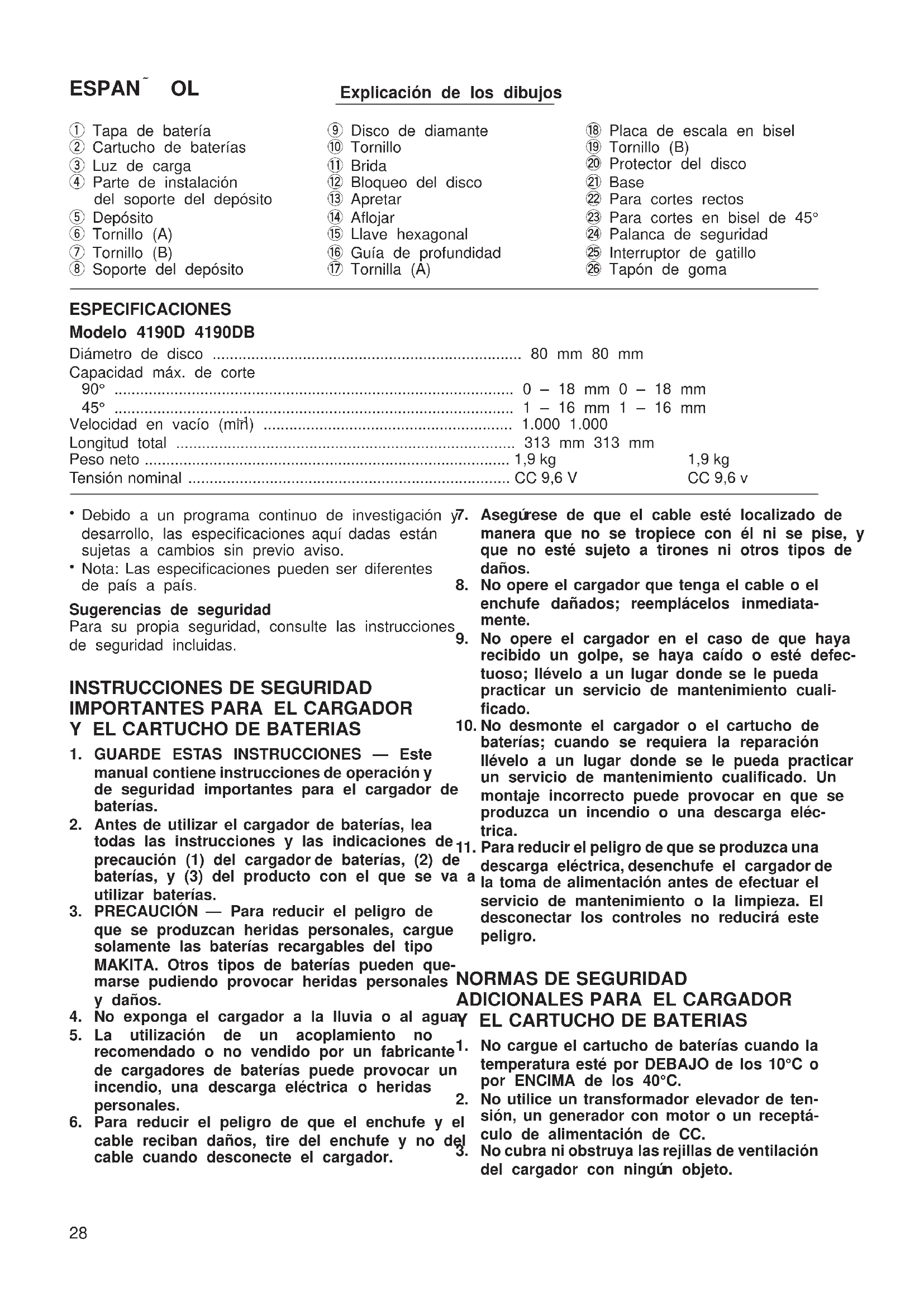 Encuentra gratis el manual del aparato 4190DB MAKITA en formato PDF.