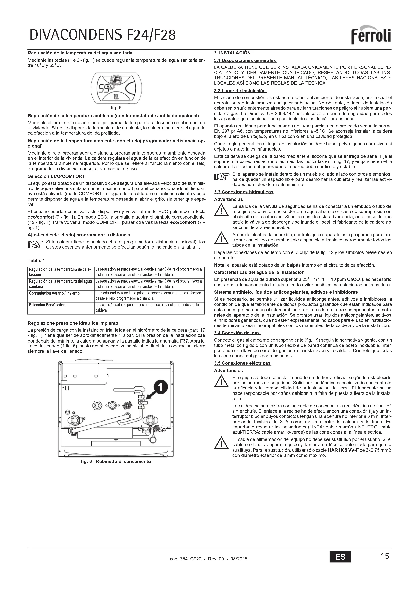 MANUAL DE USUARIO DIVAcondens F28 FERROLI
