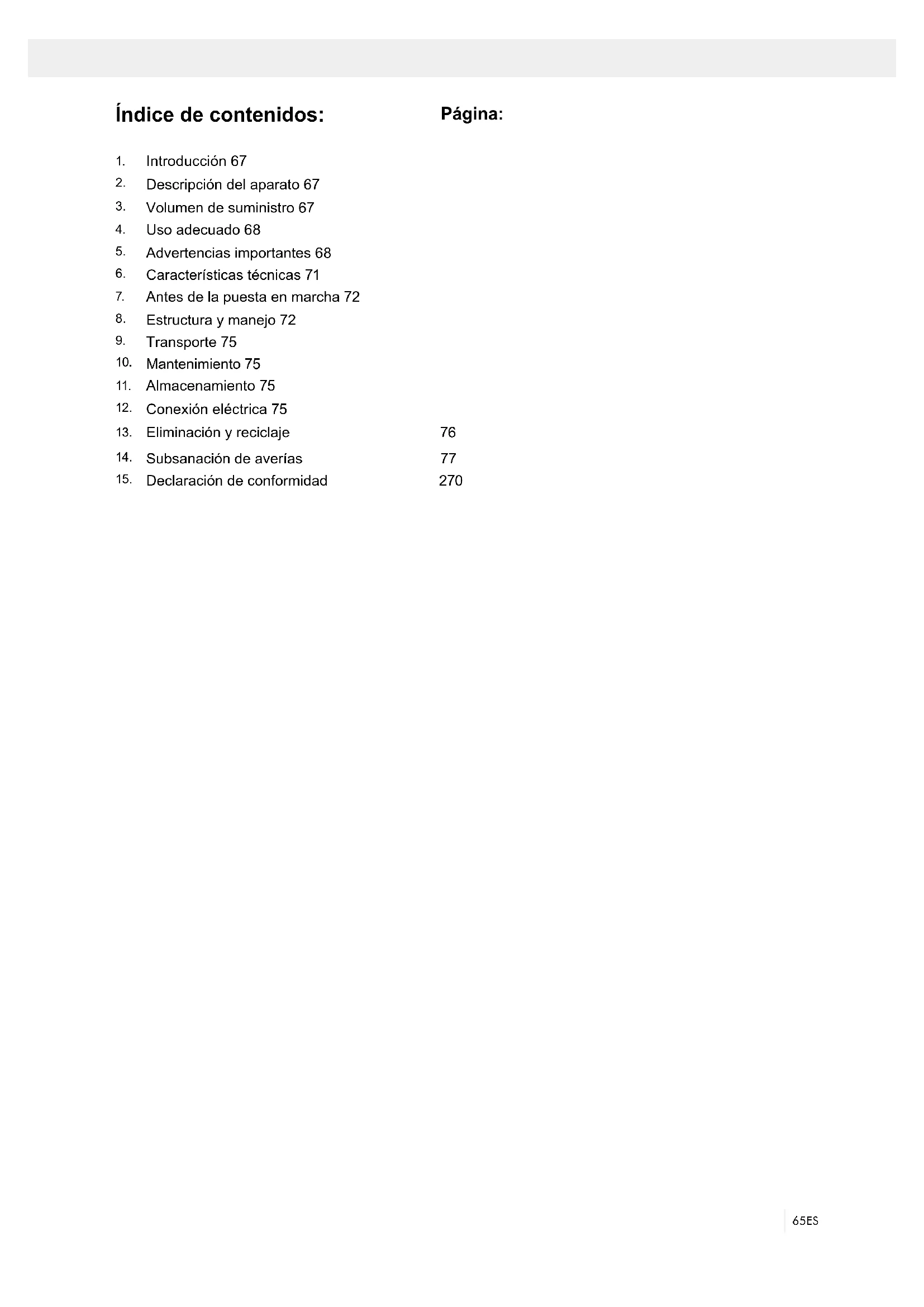 Descripción del aparato 67