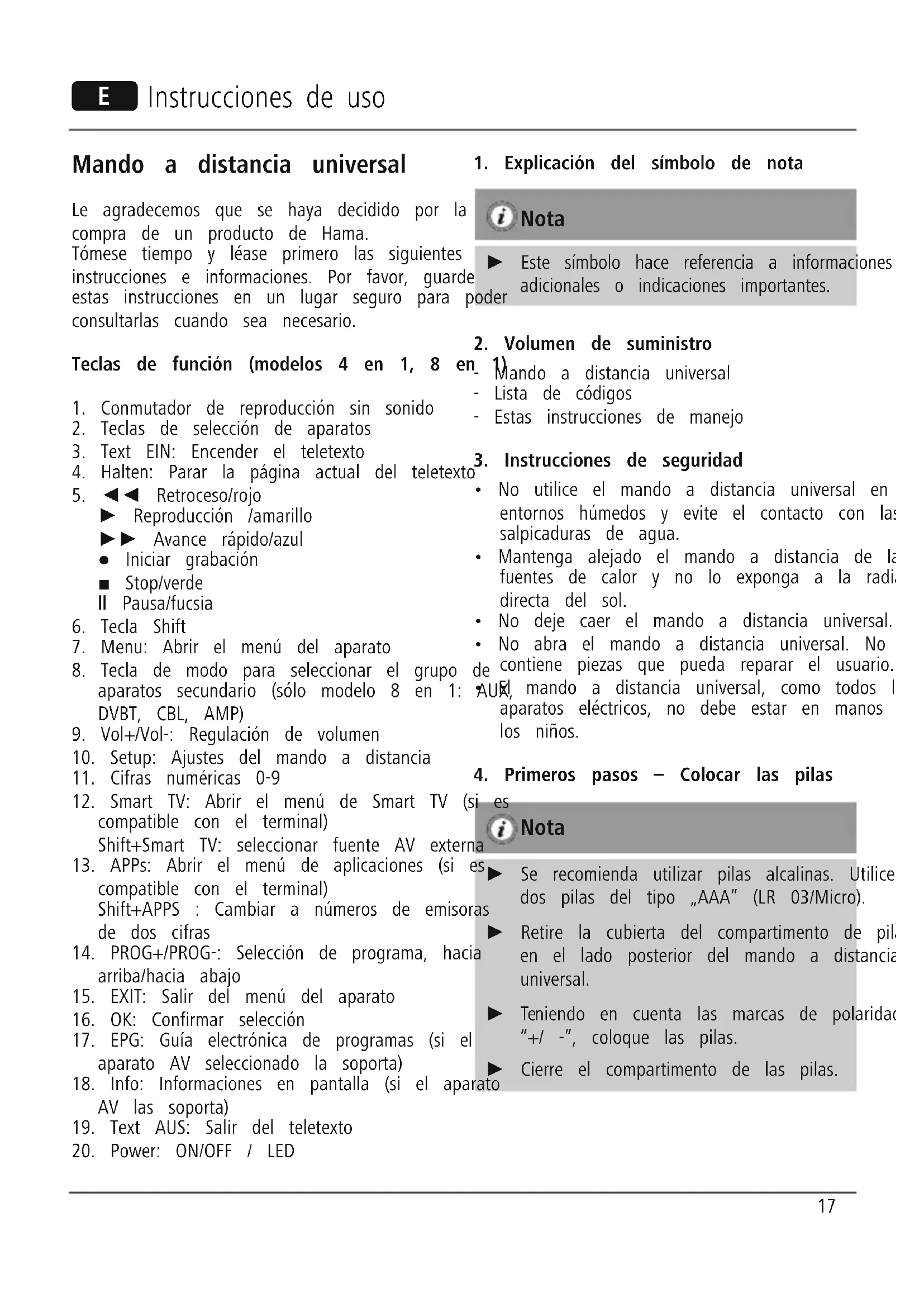 8in1 00012307 - Remoto HAMA - Manual de uso y guía de instrucciones gratis