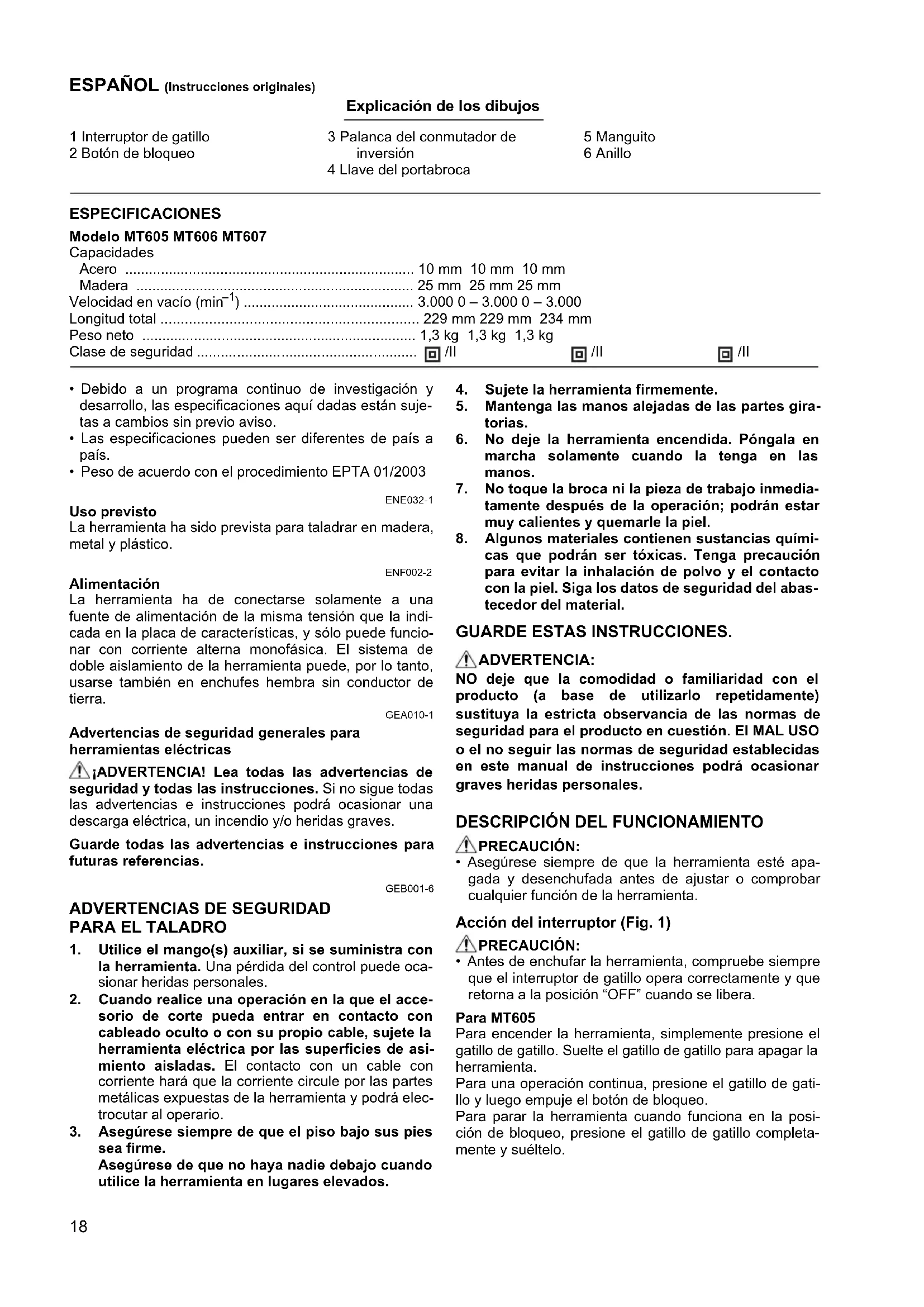 Descarga las instrucciones para tu Destornillador en formato PDF gratis! Encuentra tus instrucciones MT607 - Maktec y toma tu dispositivo electrónico nuevamente en la mano. En esta página están publicados todos los documentos necesarios para el uso de su dispositivo. MT607 de la marca Maktec.