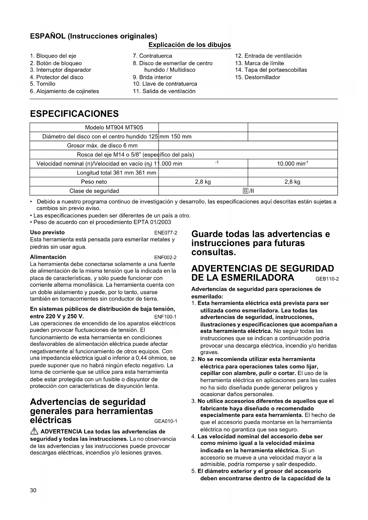 Descarga las instrucciones para tu Amoladora angular en formato PDF gratis! Encuentra tus instrucciones MT904 - Maktec y toma tu dispositivo electrónico nuevamente en la mano. En esta página están publicados todos los documentos necesarios para el uso de su dispositivo. MT904 de la marca Maktec.