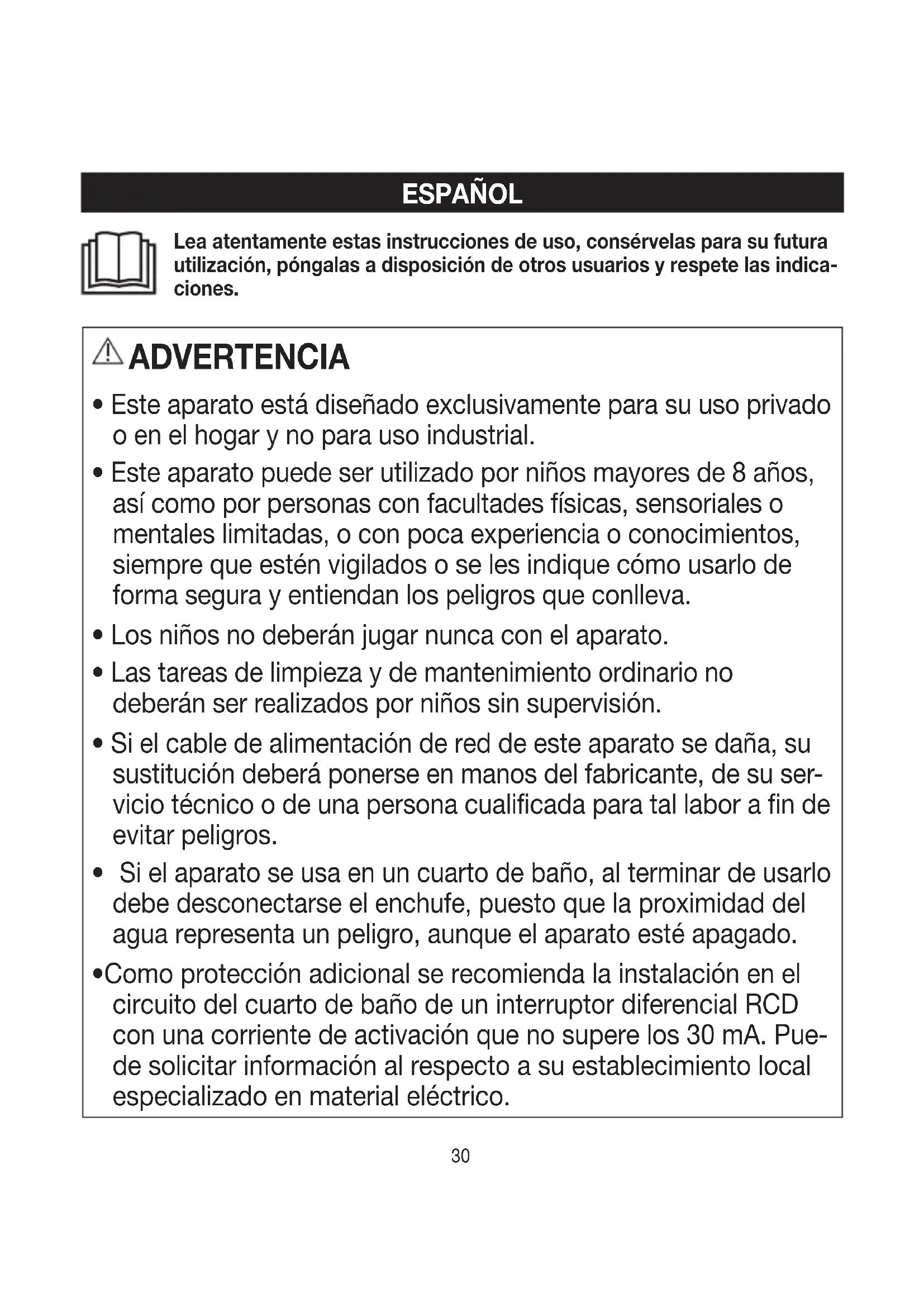 | Seguridad | Apagado autom e1tico tras 60 minutos de inactividad, cable giratorio para evitar enredos. |