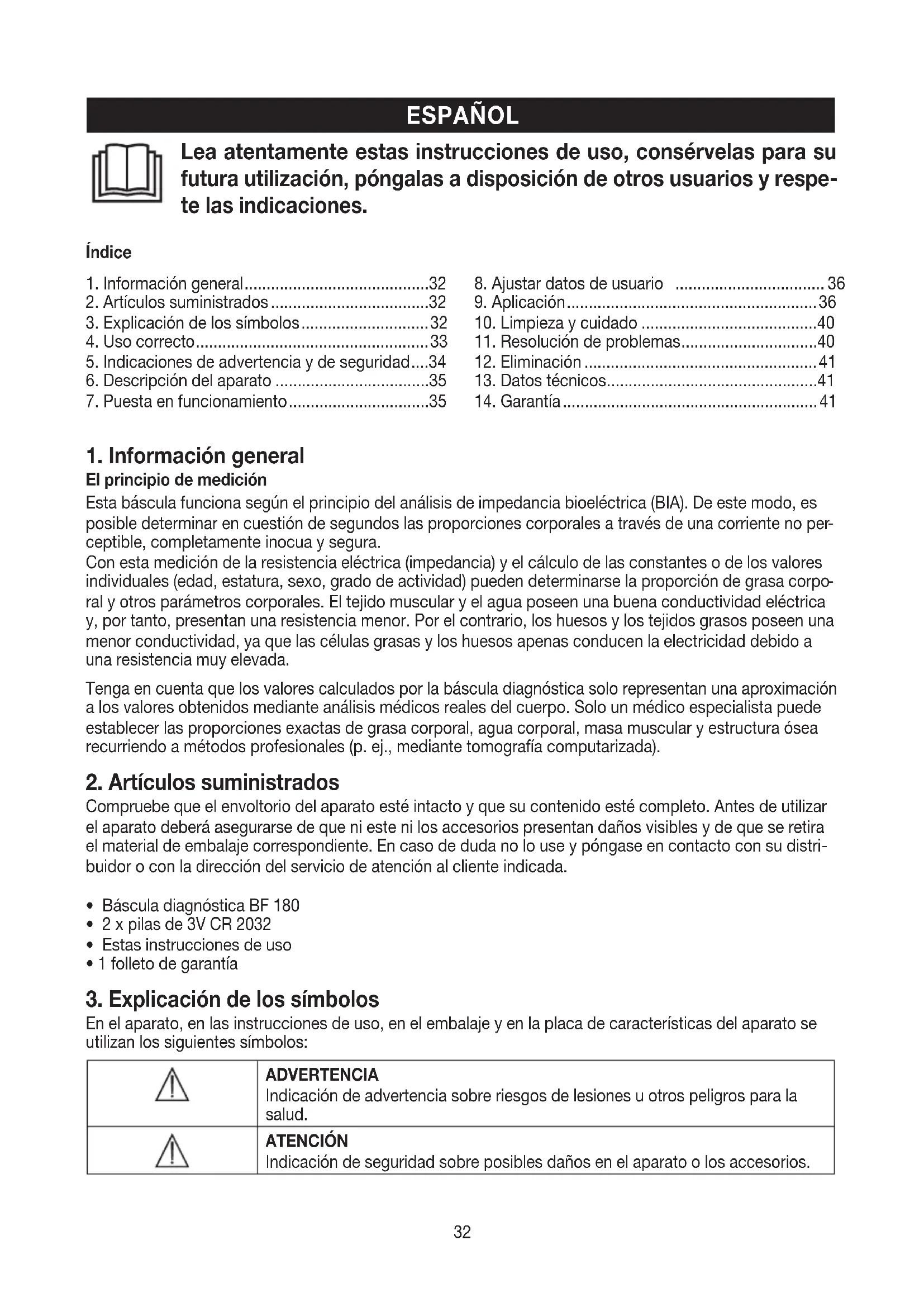 3. Explicación de los símbolos ............................. 32