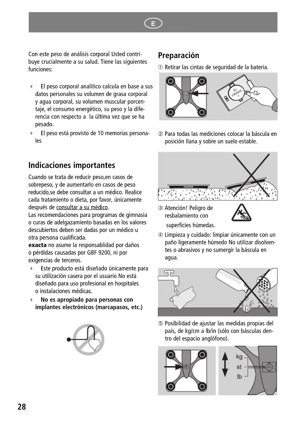 Los analisis se basan en la medicación de la resistencia electrónica del cuerpo. Los hábitos de comida y bebida durante el transcurso del día y el estudio individual de vida tienen influencia en el contenido de agua. Esto se hace notar mediante oscilaciones en la pantalla. Para Obtener un的结果ado de analisis lo más exacto y constante possible, trate demantenerunas conditiones de medicación constantes, puis sólo asi podrá observar con exactitud los Cambios en un lapso de tiempo largo.