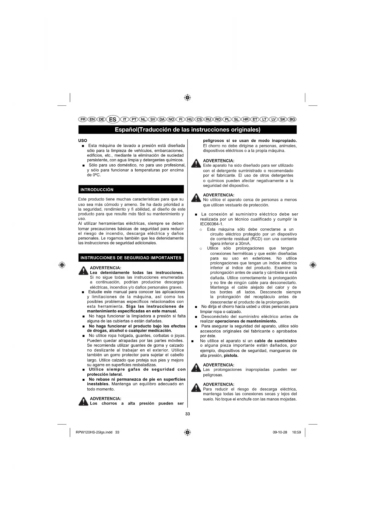 MANUAL DE USUARIO RPW120HS RYOBI
