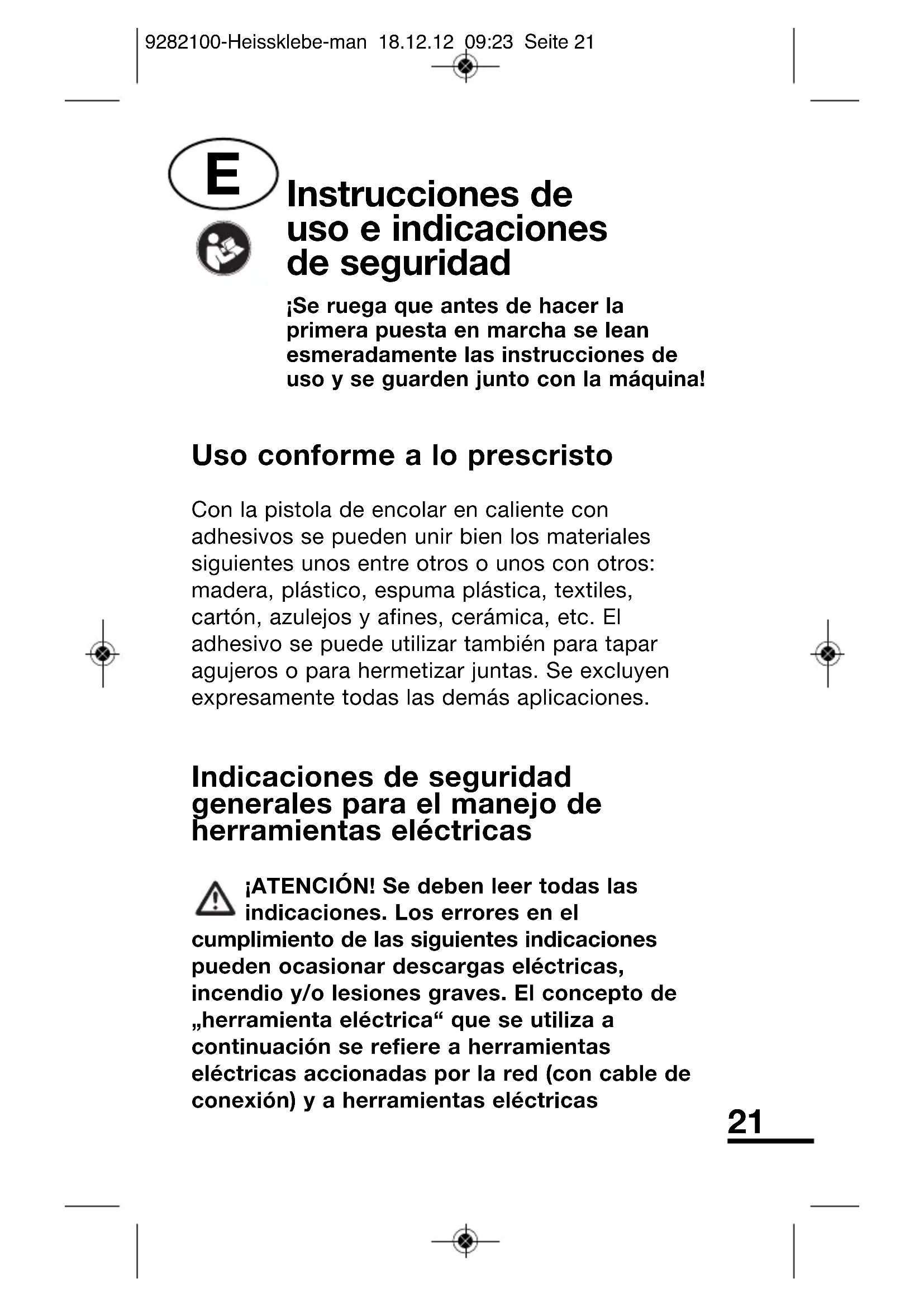 | Seguridad | Usar guantes de protecci f3n, evitar el contacto directo con el pegamento caliente |