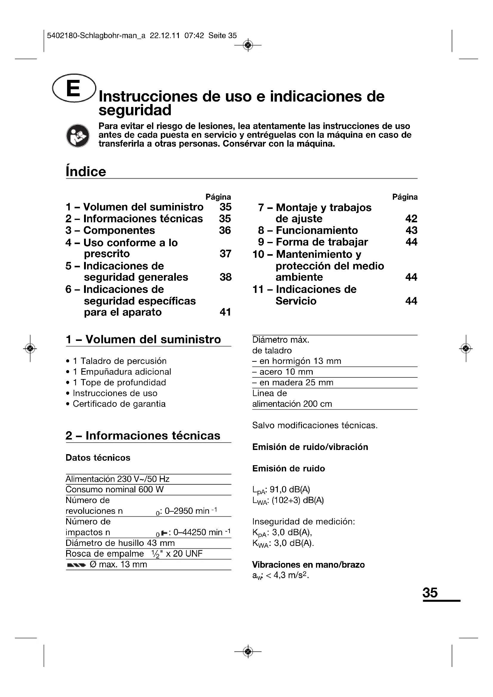 | 1 - Volumen del suministro | 35 |
