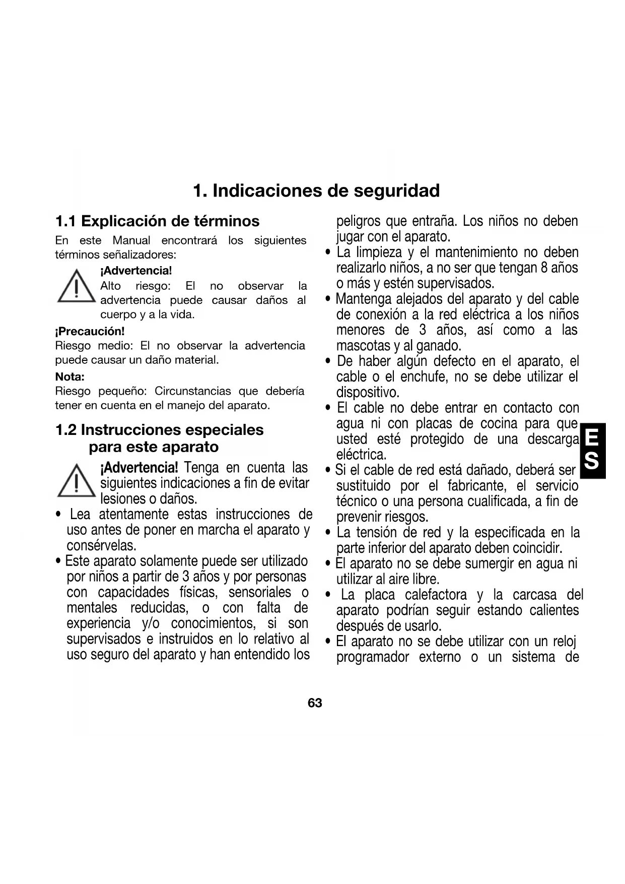 para este aparato ¡Advertencia! Tenga en cuenta las siguientes indicaciones a fin de evitar lesiones o daños.