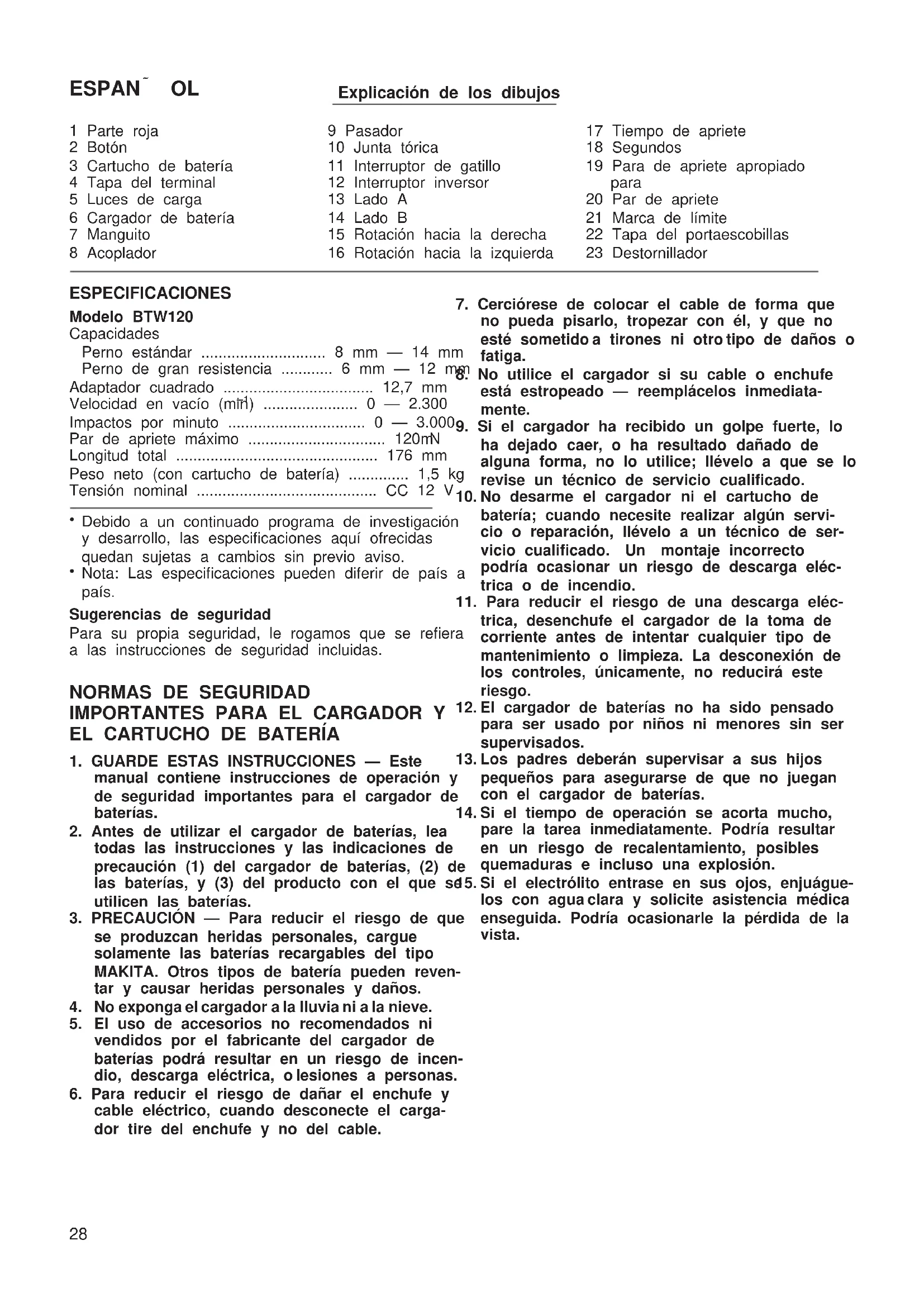 MANUAL DE USUARIO BTW120 MAKITA
