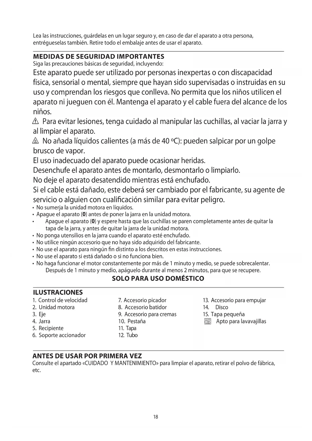 - No utilise los dedos ni cubiertos para empujar los alimentos a工程技术 del tubo, utilise solo el accesorio para empujar.