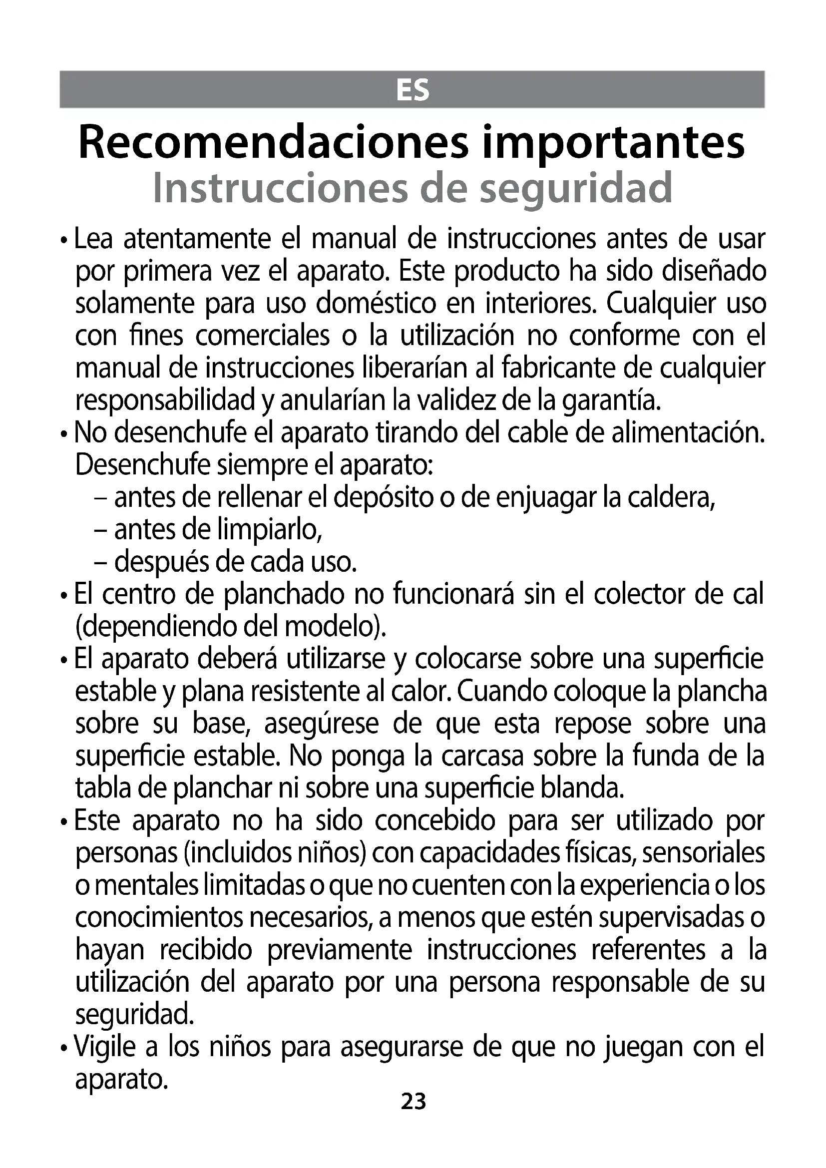 - Su centro de planchado es un aparato eléctrico: deberá utilizarse en condiciones normales de uso.