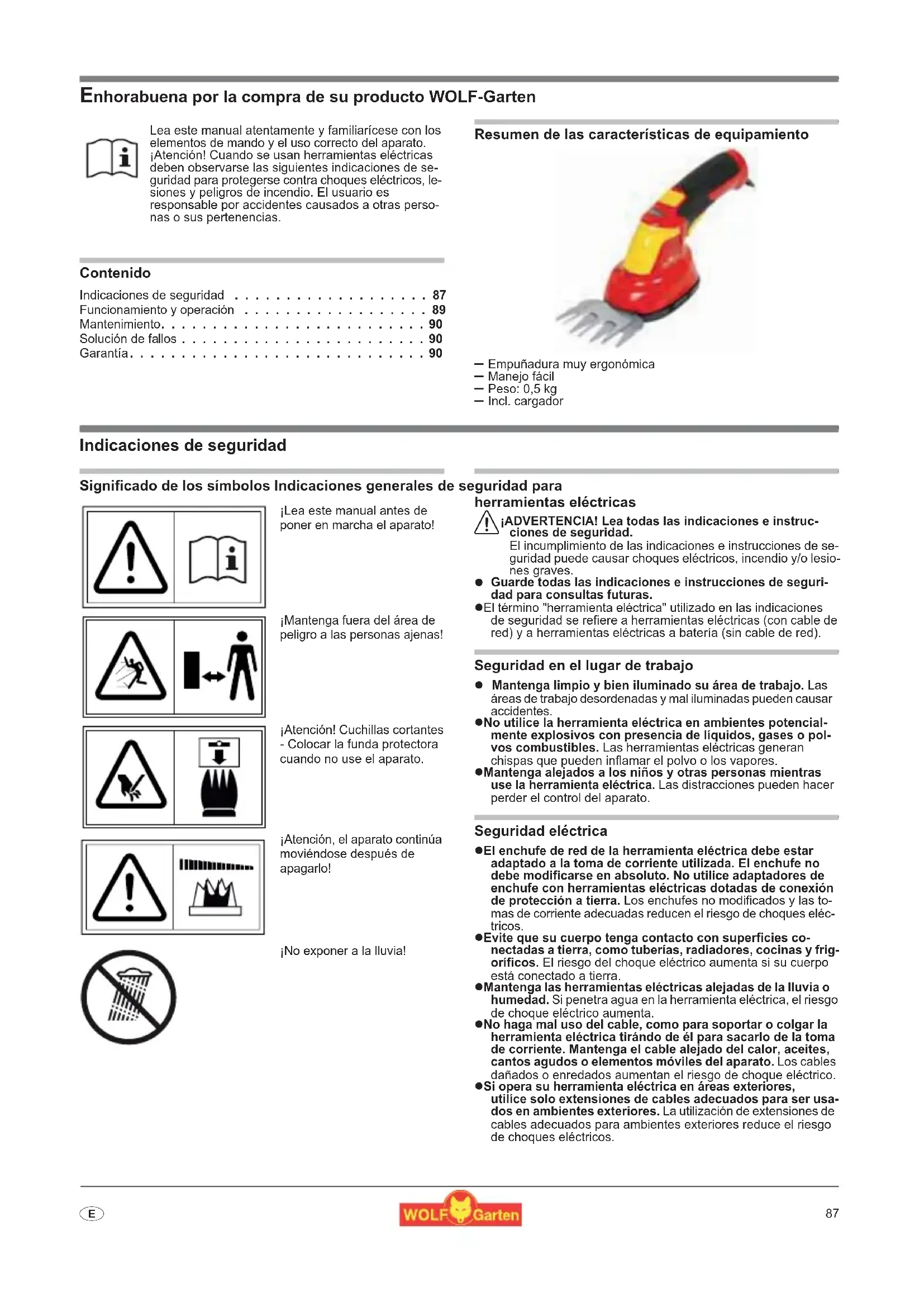 - Enhorabuena por la compra de su producto WOLF-Garten Contenido Indicaciones de seguridad p. 87