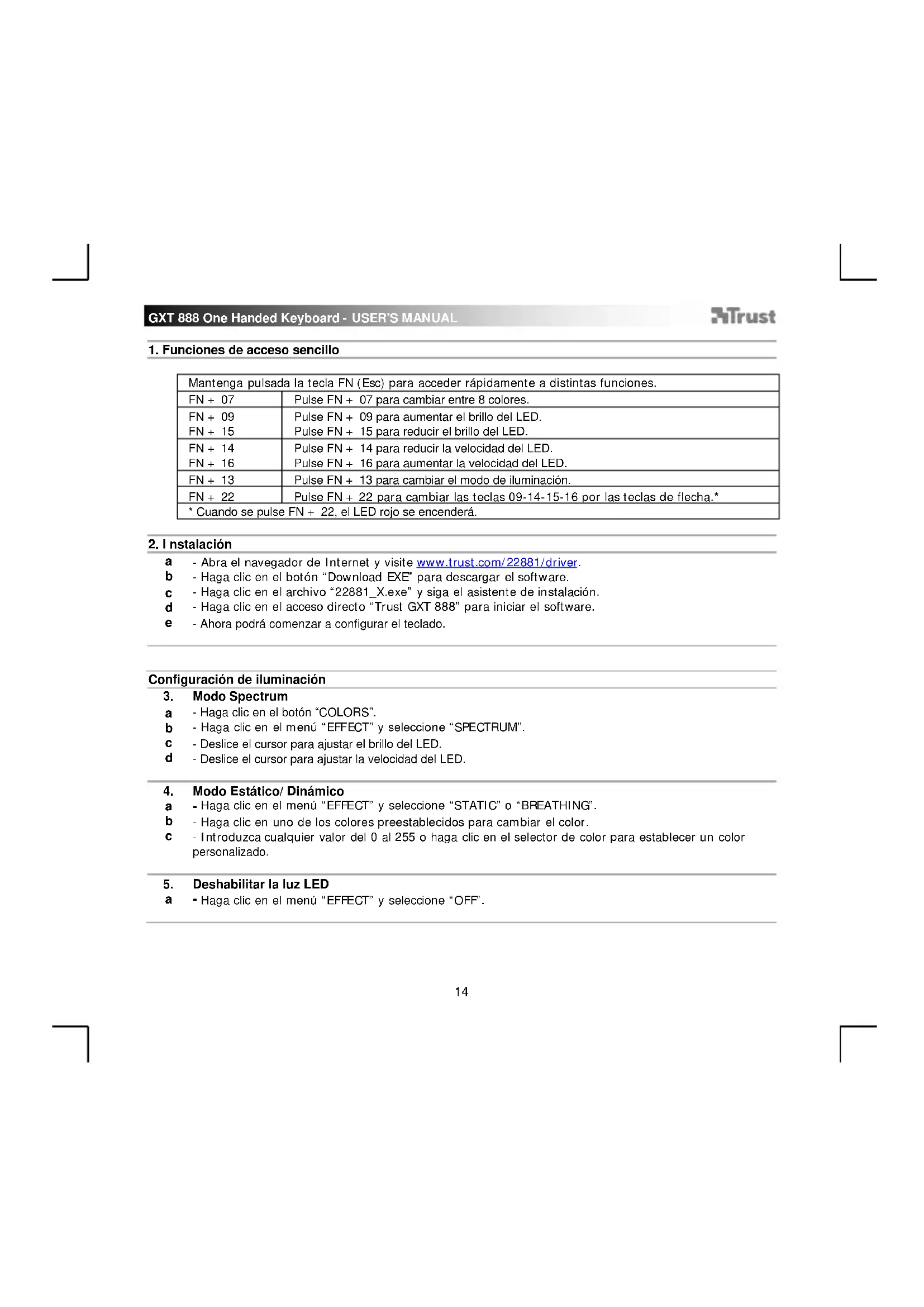 Assa GXT 888 - Teclado TRUST - Manual de uso y guía de instrucciones gratis