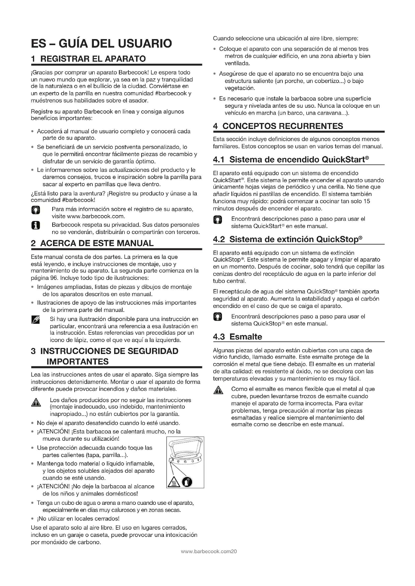 ¡Gracias por comprar un aparato Barbecook! Le espera todo un nuevo mundo que explorar, ya sea en la paz y tranquilidad de la naturaleza o en el bullicio de la ciudad. Conviértase en un experto de la parrilla en nuestra comunidad #barbecook y muéstrenos sus habilidades sobre el asador. Registre su aparato Barbecook en línea y consiga algunos beneficios importantes:
